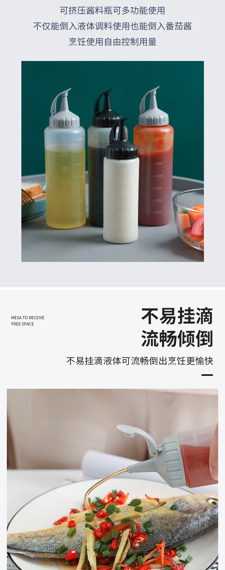ビジュアルスケール制御漏れ防止スクイズソースボトルキッチンケチャップオイスターソースハニーサラダドレッシングスクイズボトル工場直販