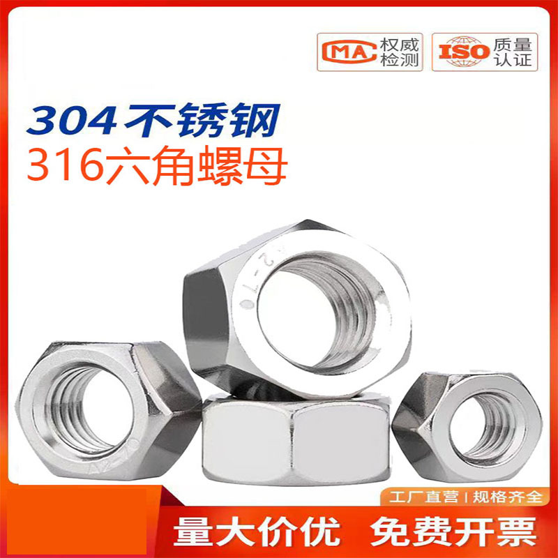 304/316不锈钢螺母六角螺帽螺丝帽大全M3M4M5M6M8M10M12M16M20M24