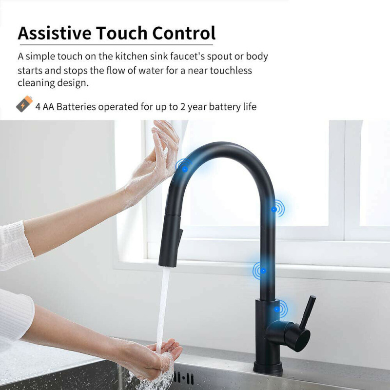 304ステンレススマートタッチ式キッチン蛇口引き出し式スプリンクラーステンレスタッチ水槽蛇口