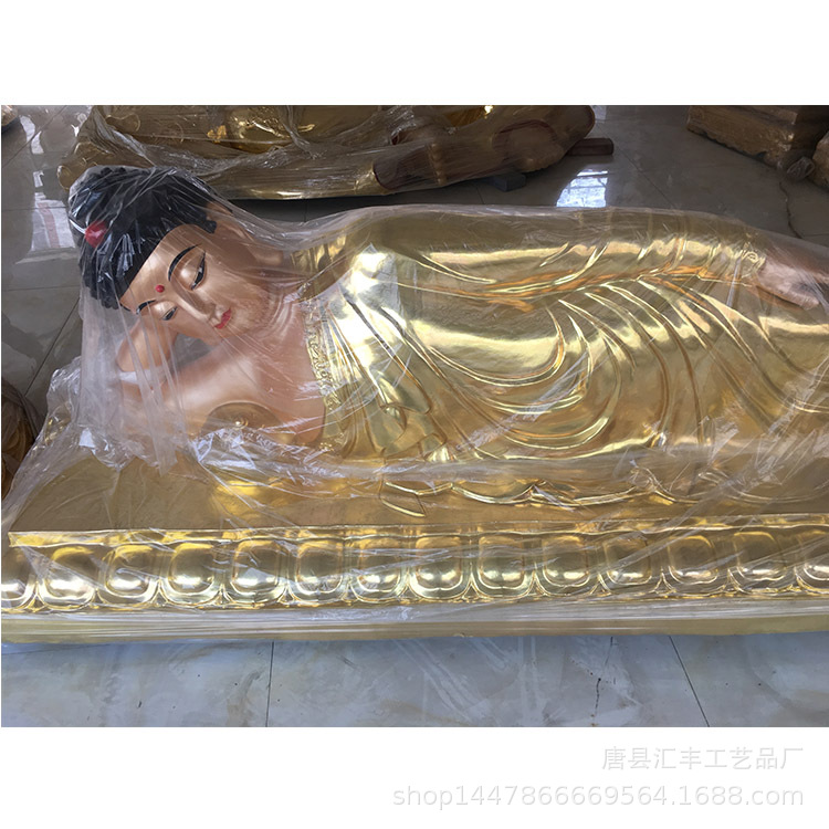 純銅製金箔張り横臥仏像、釈迦牟尼仏像、特注彩色金箔張り仏堂寺院仏像、側臥仏像