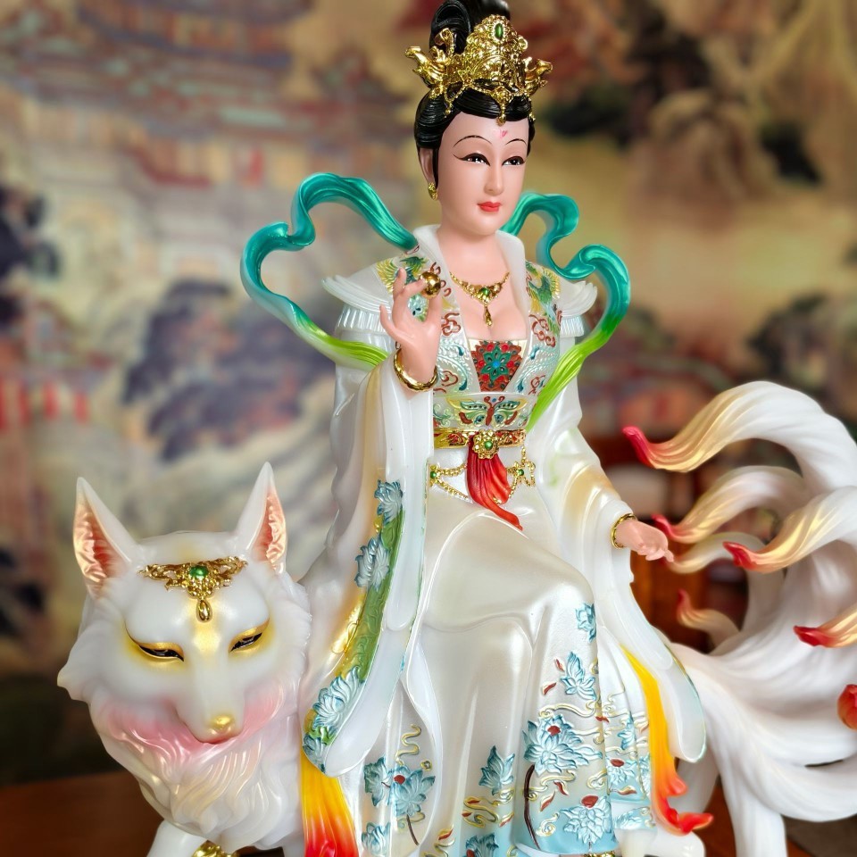 九尾狐神像摆件家用九公子九尾狐后神像26寸68公分树脂珍珠溢彩
