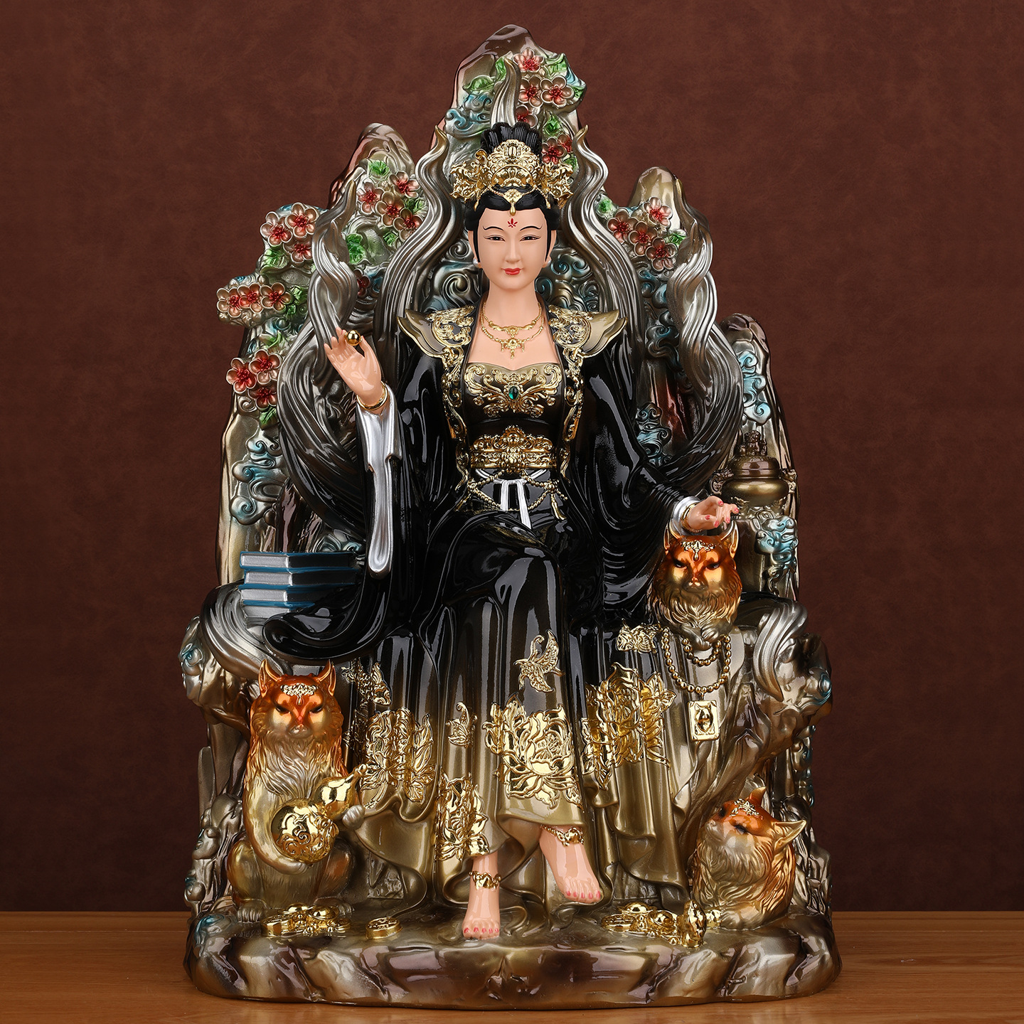 新款九尾娘娘神像九尾狐黑狐像体真身青丘供奉九姑娘家用树脂摆件