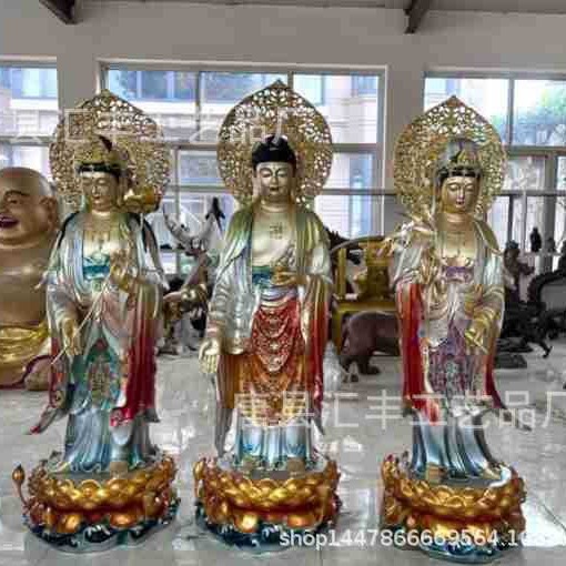 三宝仏西洋三聖彩絵鋳造銅仏像卸売り寺院純真鍮貼り金三聖像メーカー木