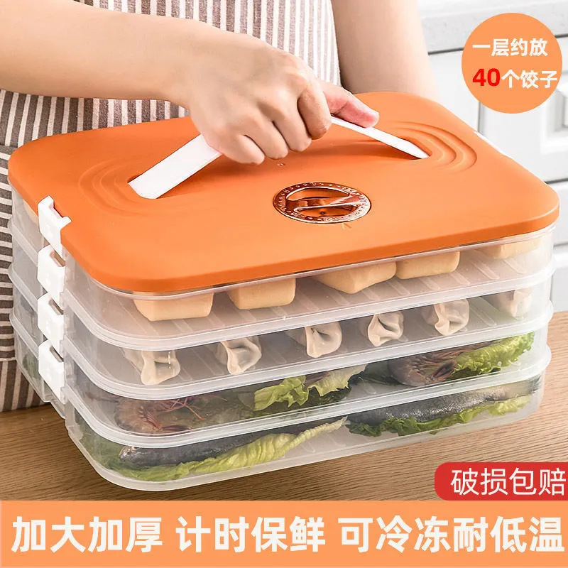 大容量鮮度保持ボックス、持ち運び可能なダブルバックル多層餃子収納ボックス、タイマー付き組み合わせ冷凍餃子ボックス収納
