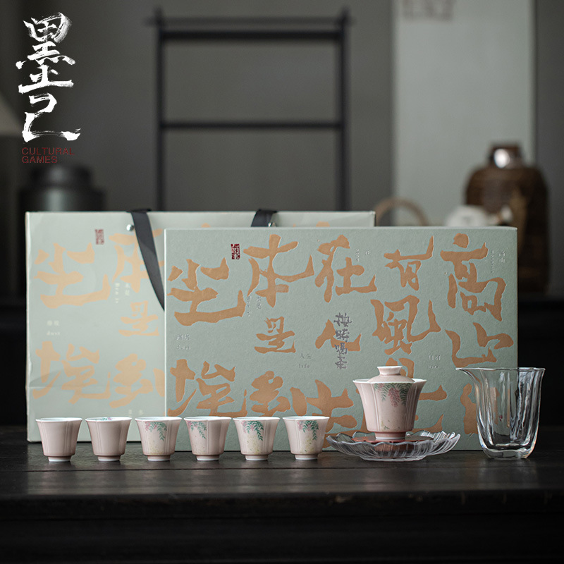 墨己の茶器のセットは昔のお土産の工夫茶器の家庭用蓋碗セットの陶磁器のギフトボックスの茶器です。