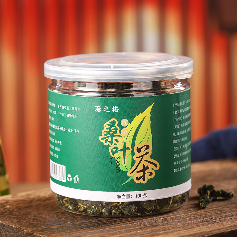 桑の葉のお茶の逸品の霜の後で桑の葉の冷凍の乾燥した霜の葉の新鮮な桑の実の葉は夜更かしして水を浸して桑の葉の瓶を飲みます。