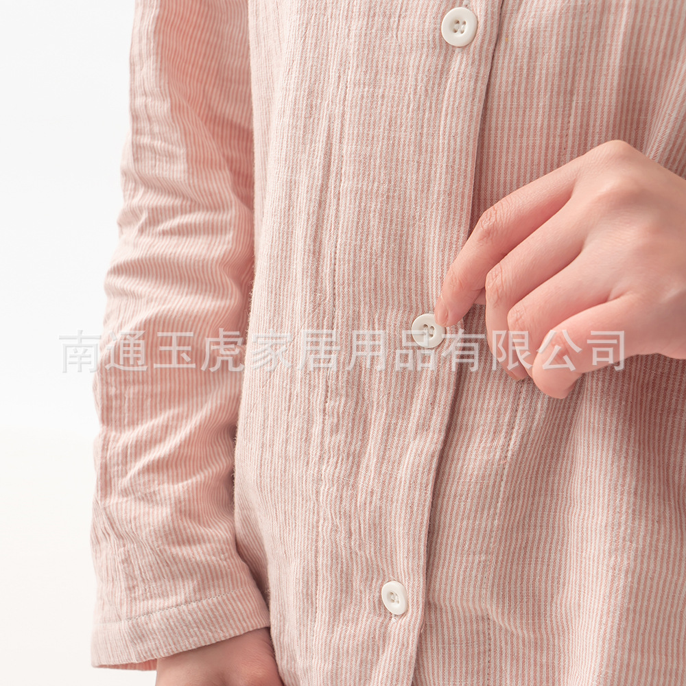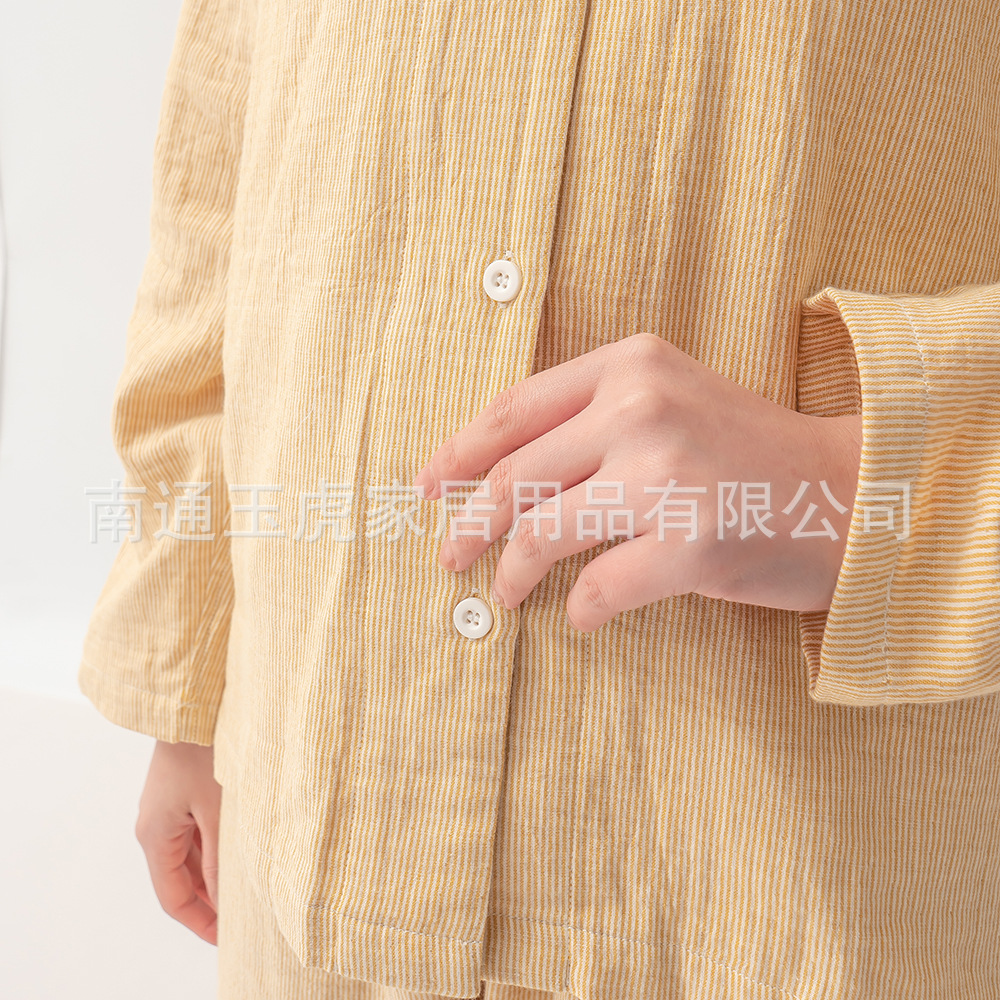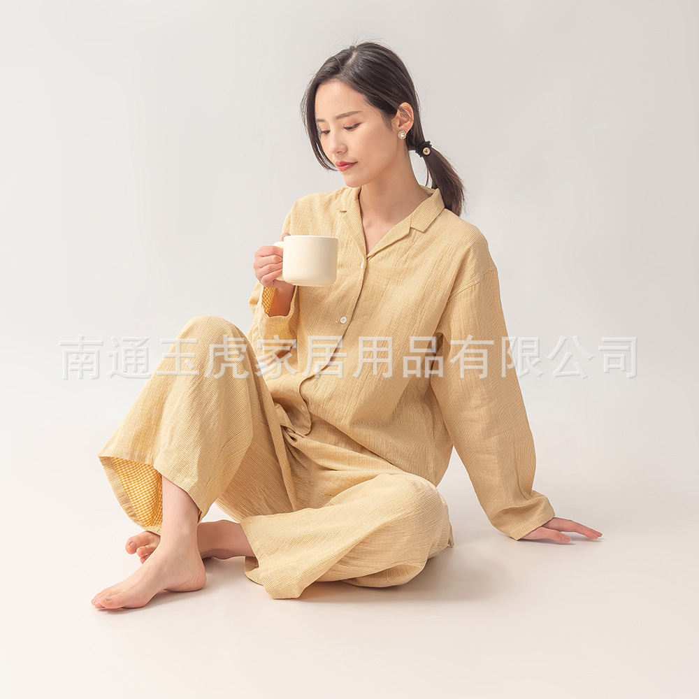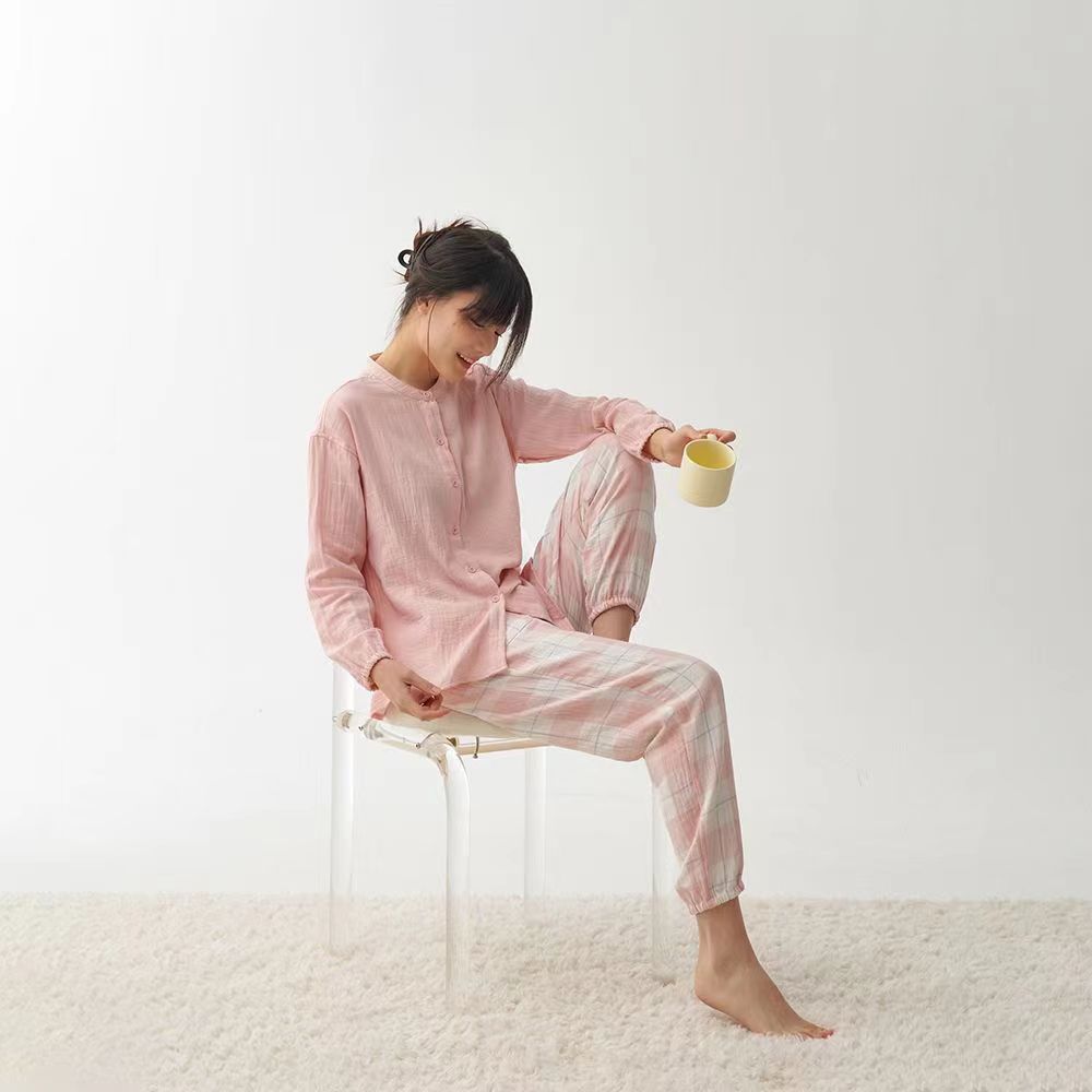 日本の純綿二重ガーゼパジャマセットズボン男性と女性の長袖カップルスタイルホーム服卸売は屋外で着用できます