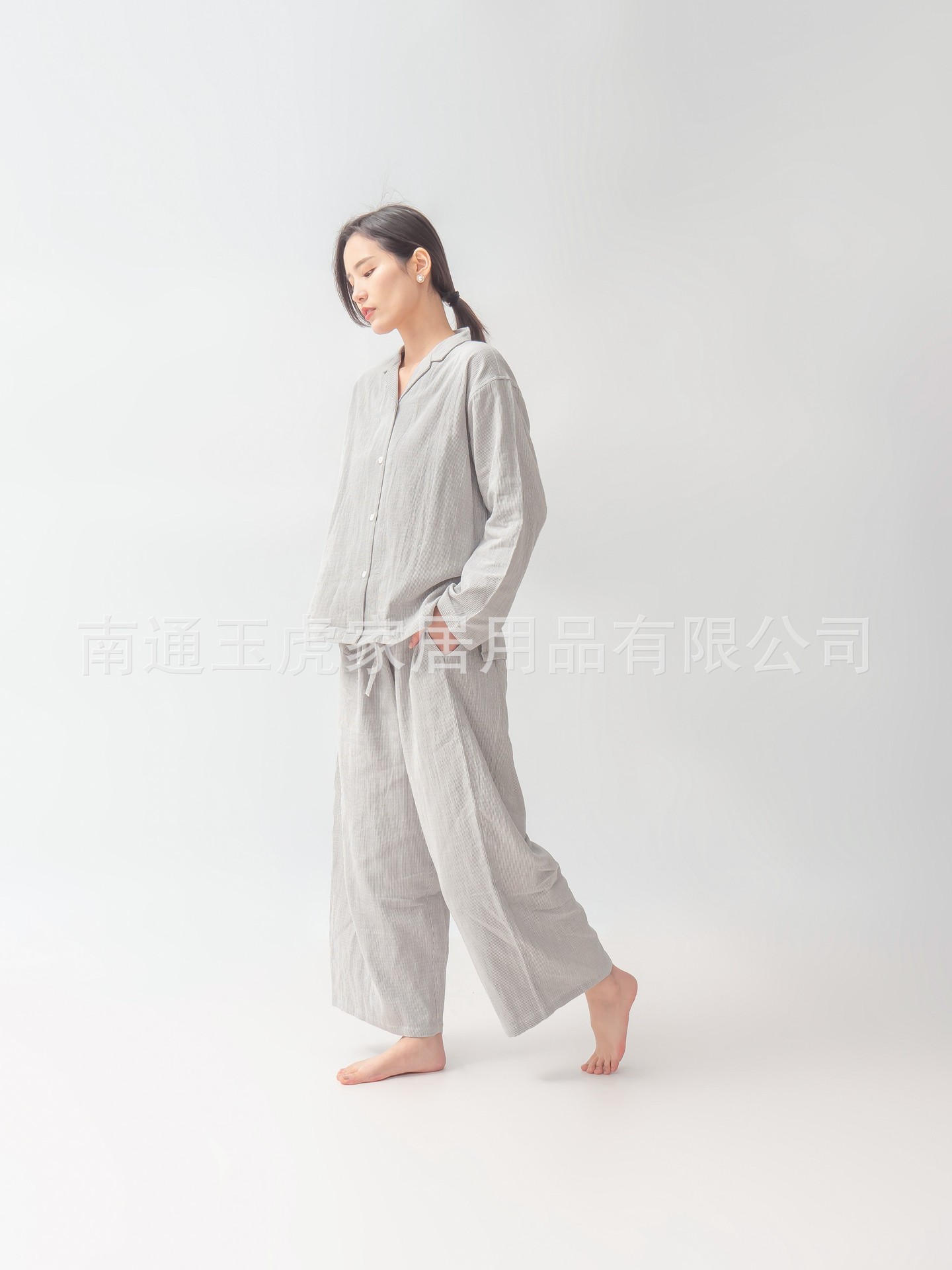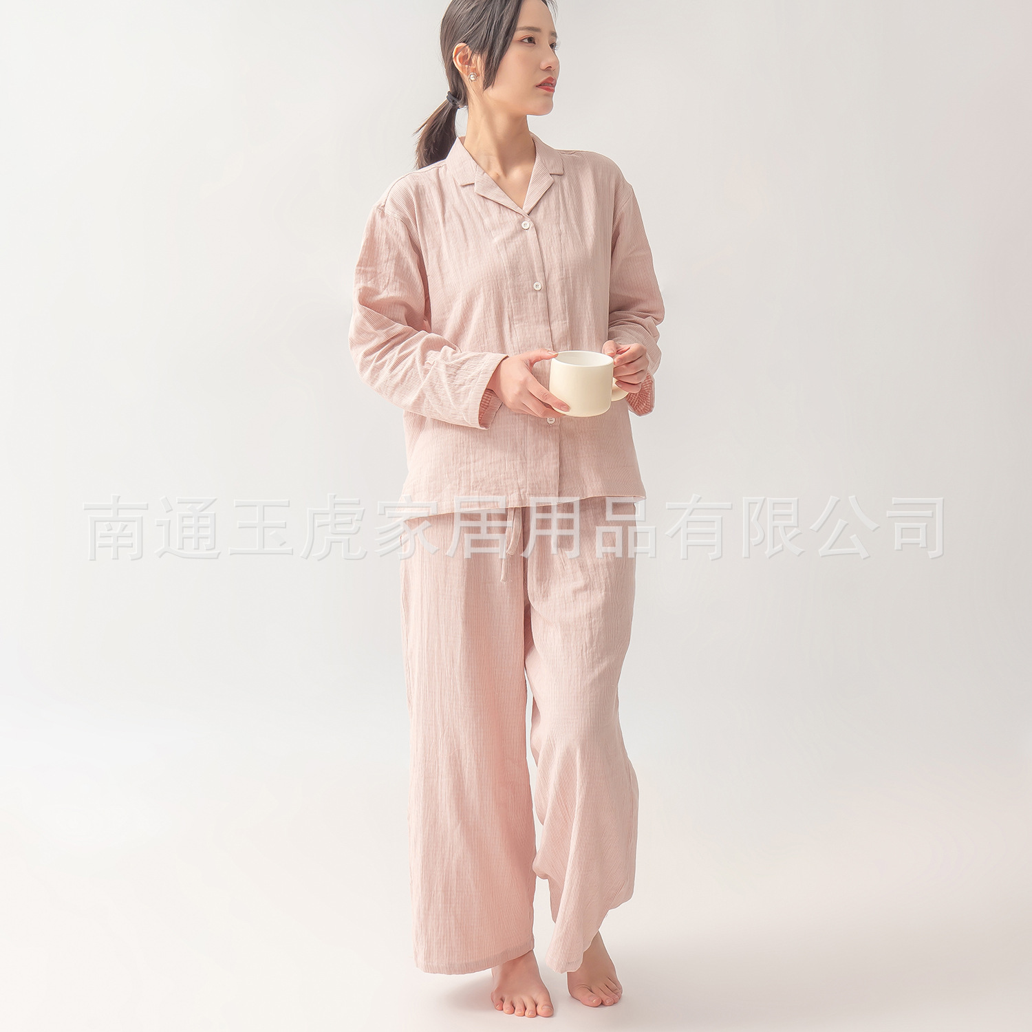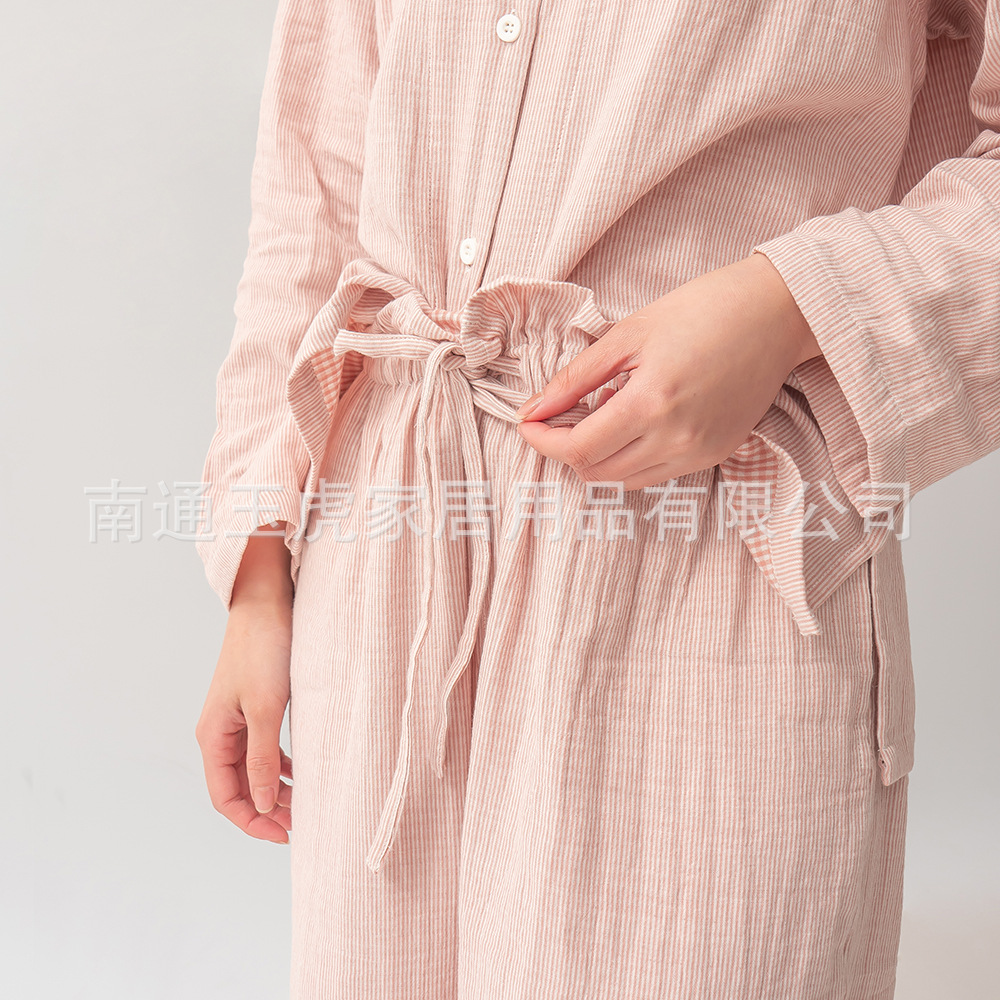 日本の純綿二重ガーゼパジャマセットズボン男性と女性の長袖カップルスタイルホーム服卸売は屋外で着用できます