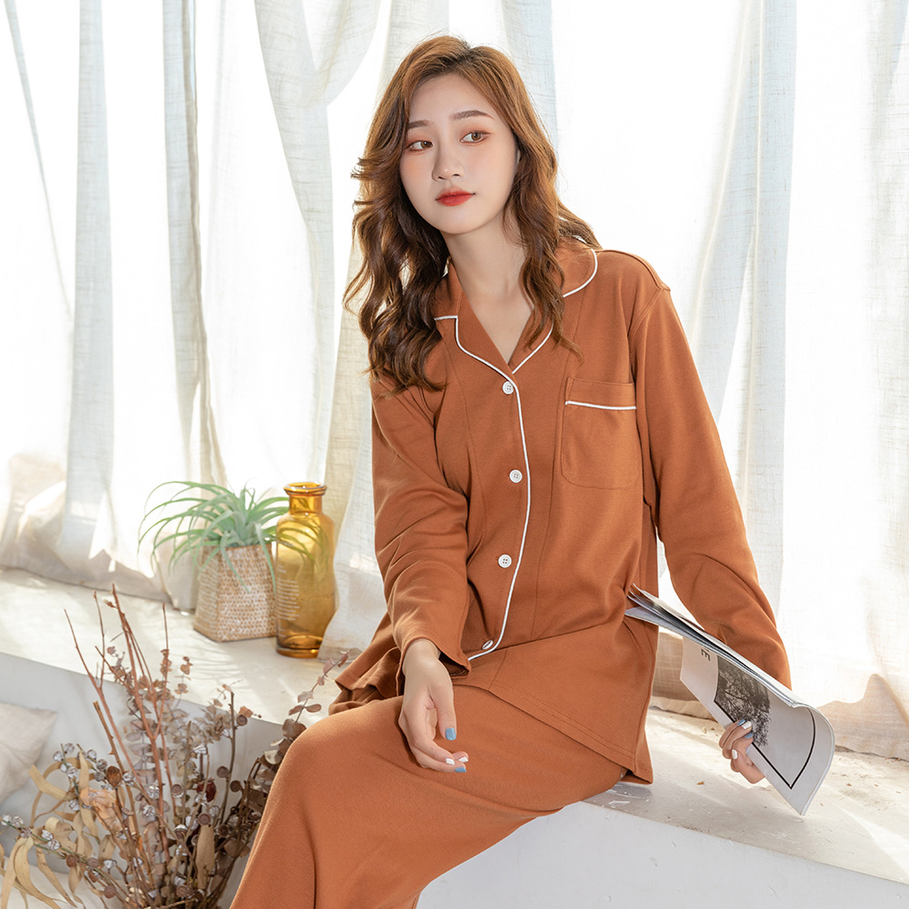 日系ゼラニウム綿レディースパジャマ無印ルームウェアニット純綿長袖セットカップル厚手パジャマレディース
