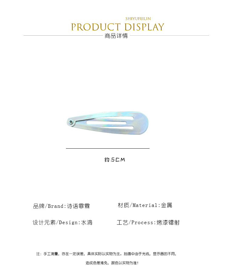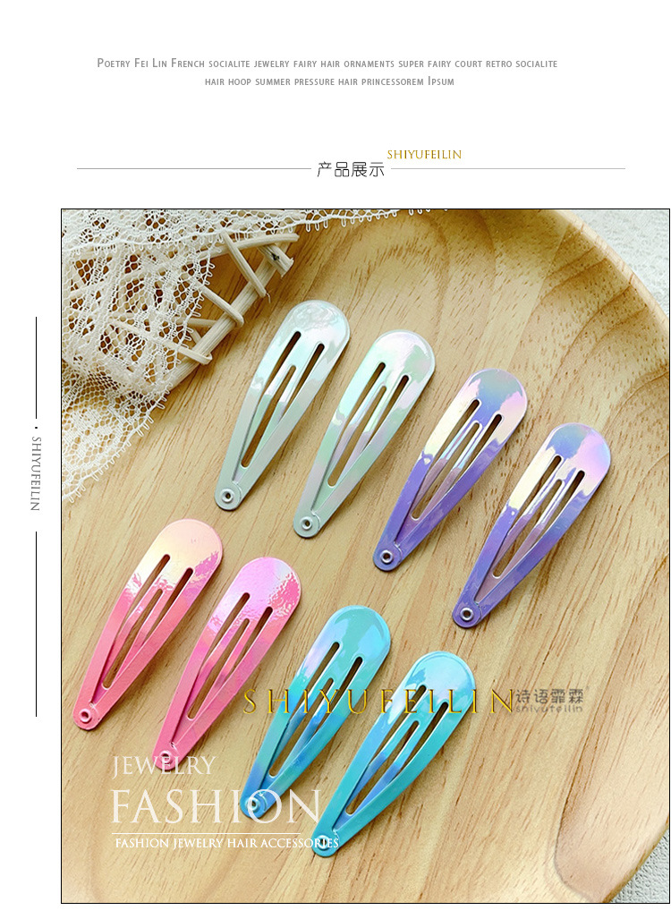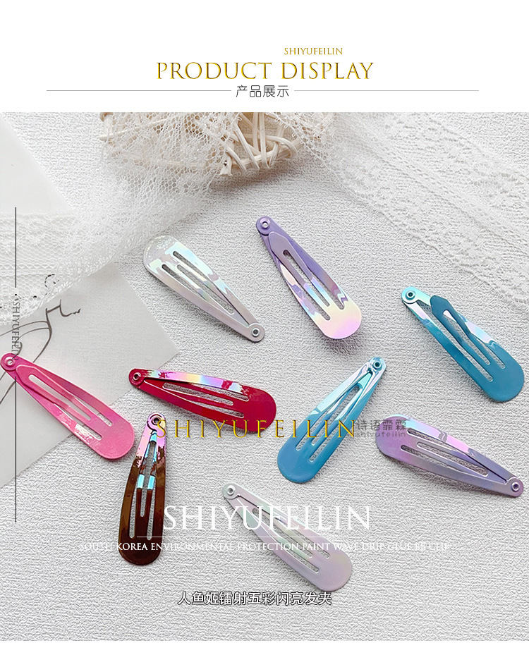 人魚姫レーザーBBクリップ新作シンプル水滴クリップおしゃれ女子カラフル個性風前髪クリップサイドクリップ卸売