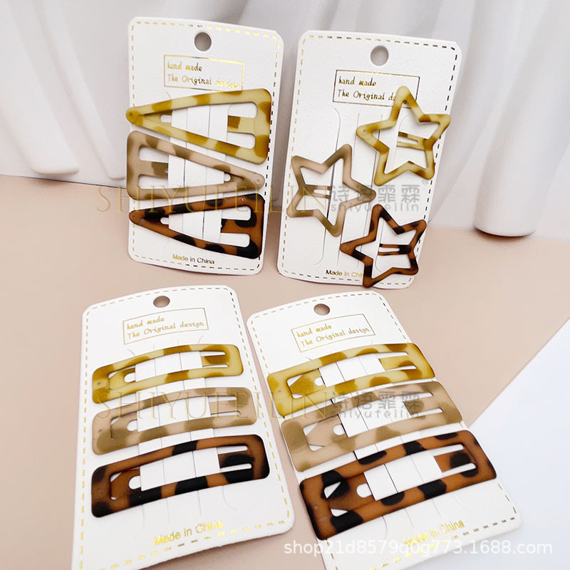 新しいヘアピンオリジナルのつや消し油ゴム塗料長方形の三角形の大きいサイズのbbクリップ五角星豹紋ヘアピン