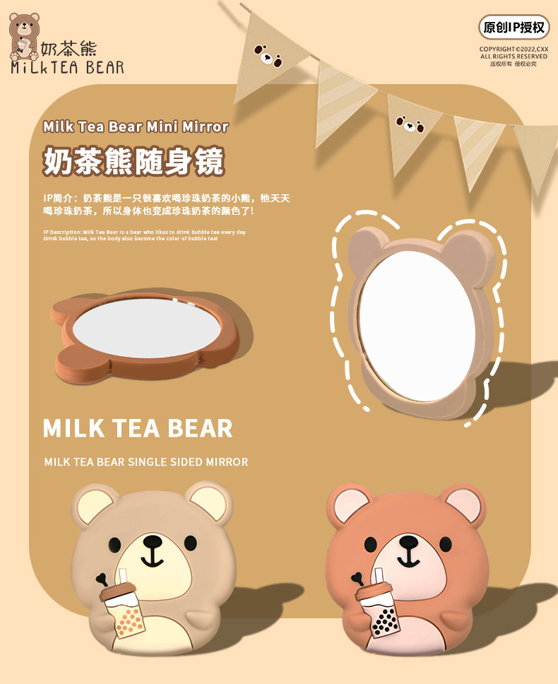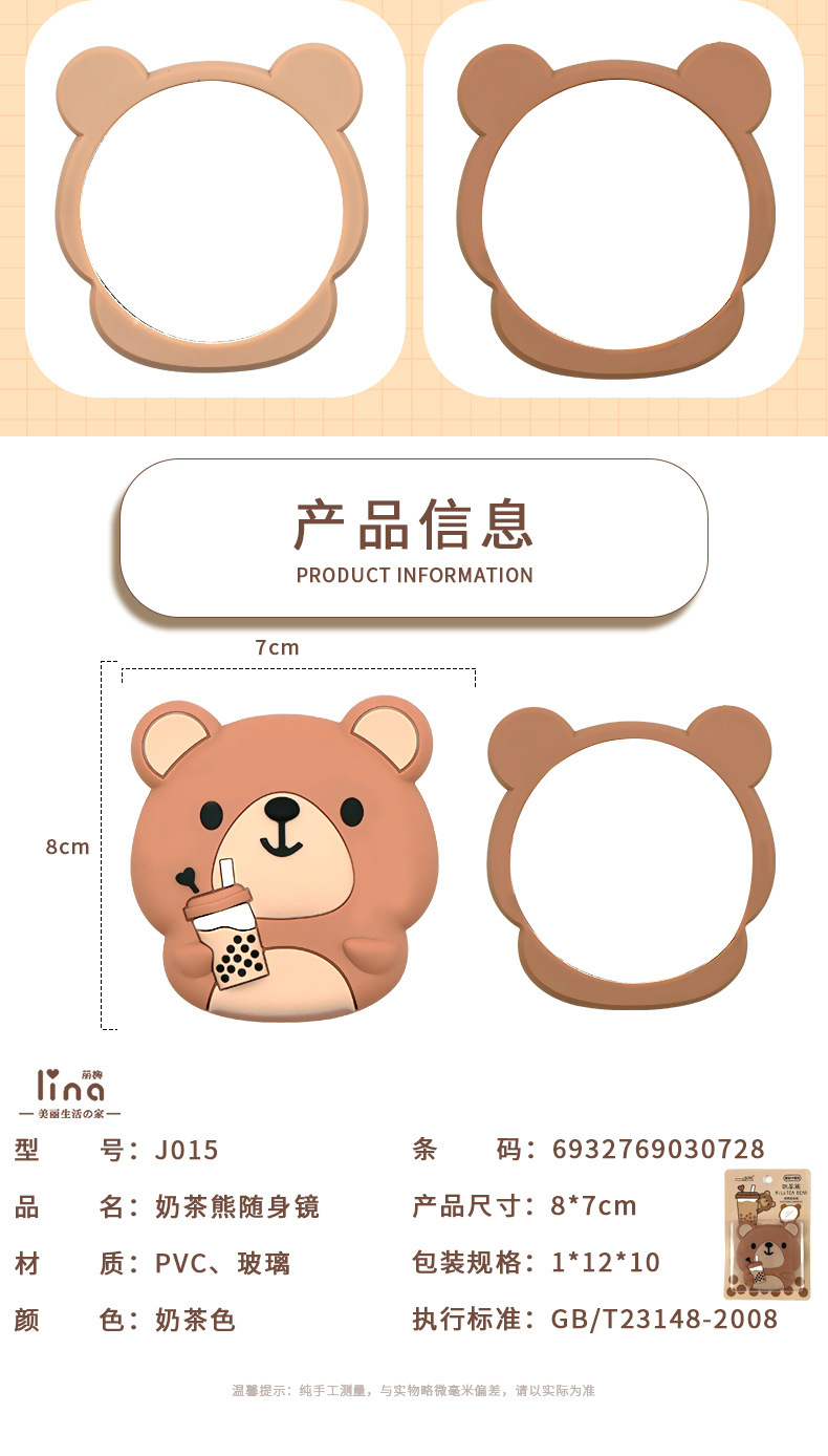 リナ携帯型ミルクティー熊ミニ化粧鏡円形かわいいアニメ携帯角型鏡両面鏡