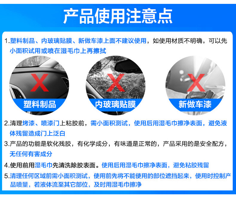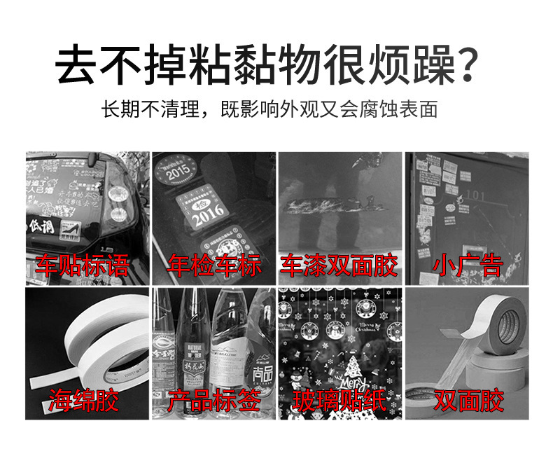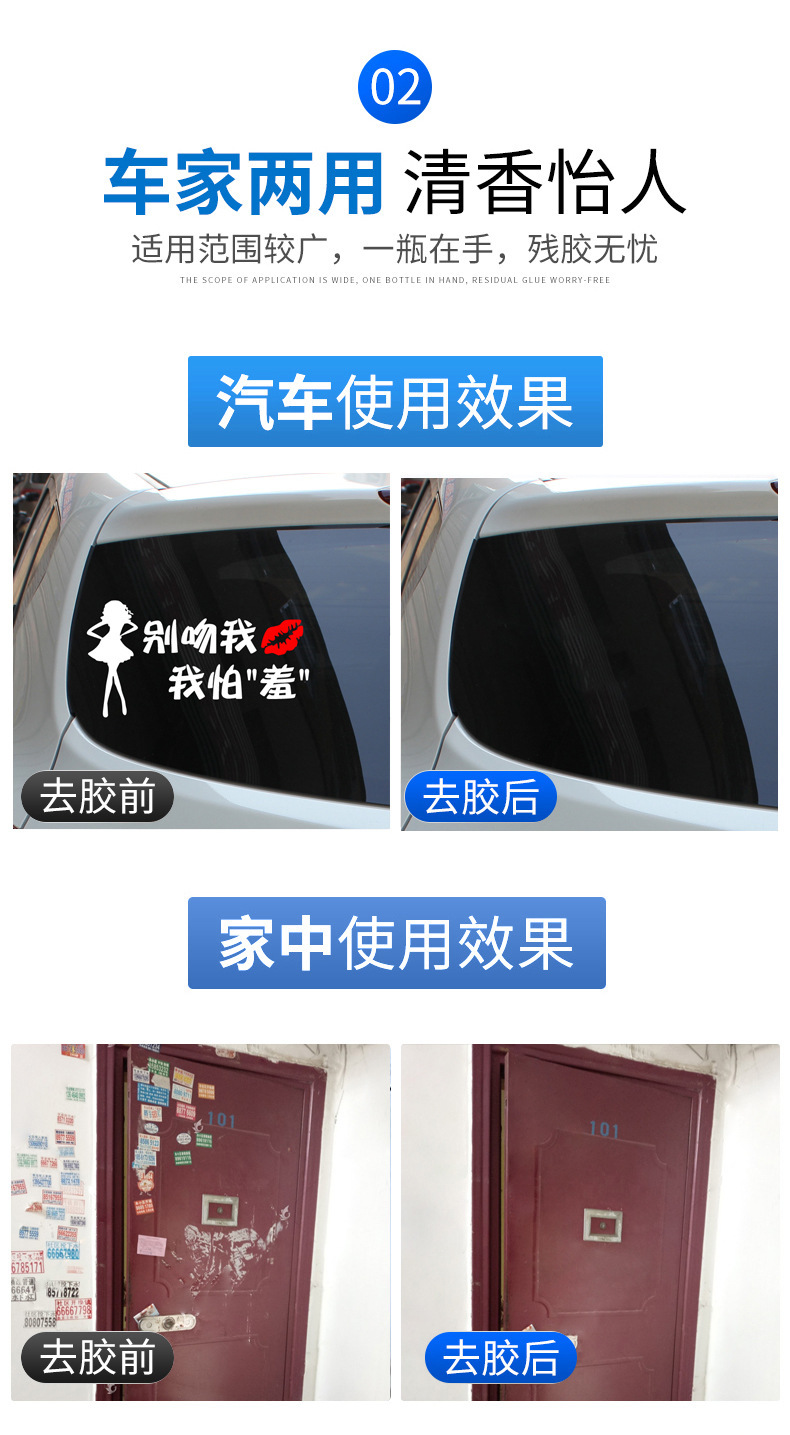 【用 途】:本品具有的渗透清洁能力,能快速有效的去除汽车油漆表面、金属表面、桌面 墙面的小广告不干胶性质东西,不损伤所清洁的表面,光洁如新。