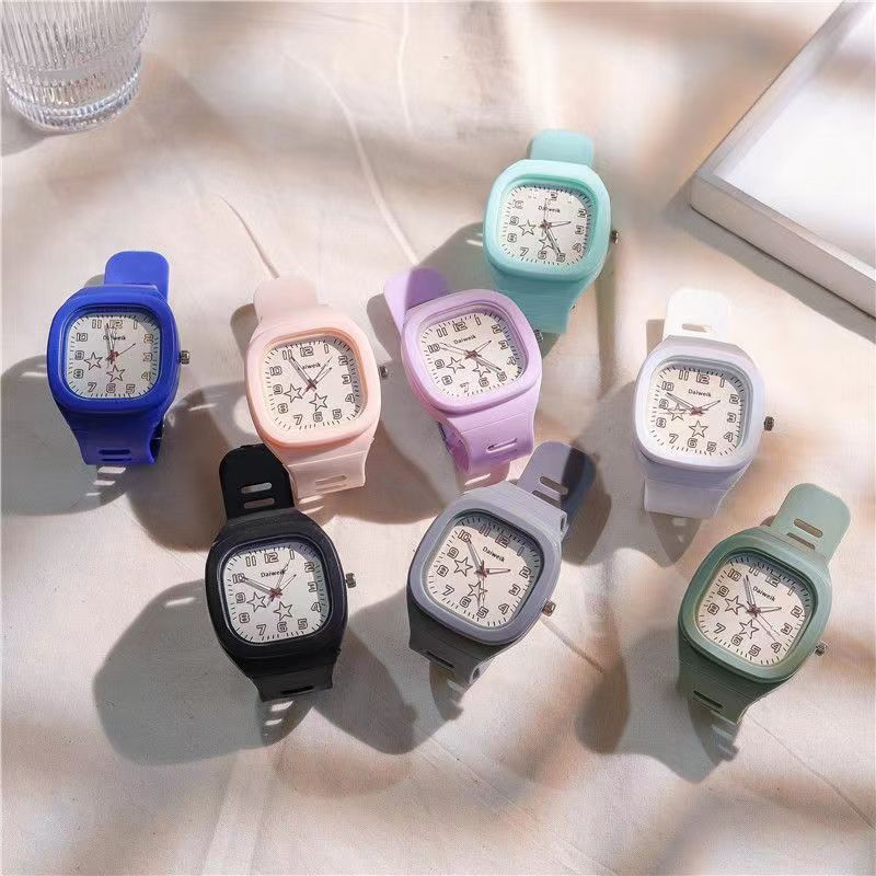 人気急上昇中!INS風キュートなスクエア型シリコン製腕時計デコレーション、夜光スポーツバンド、学生向け、海外販売卸売