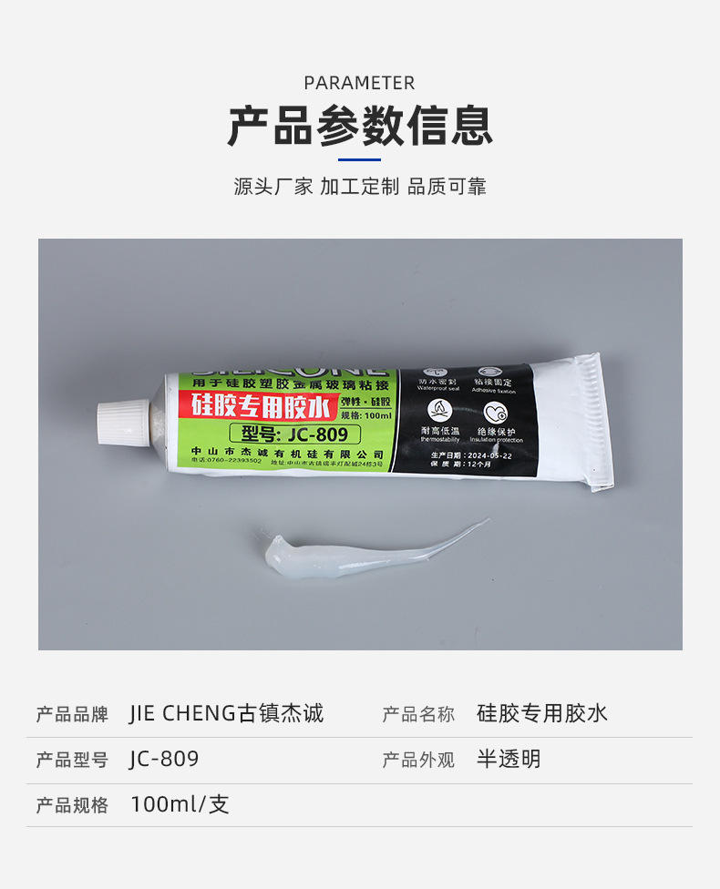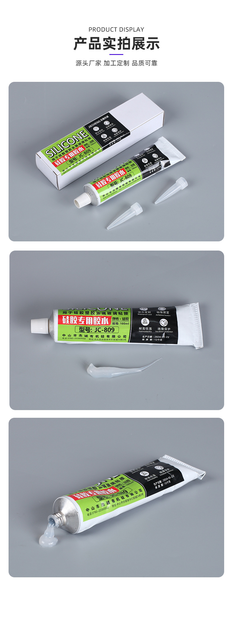 JC-809 高温および低温耐性シーラントシリコーン結合防水シリコーン金属ガラスプラスチックセラミック接着剤