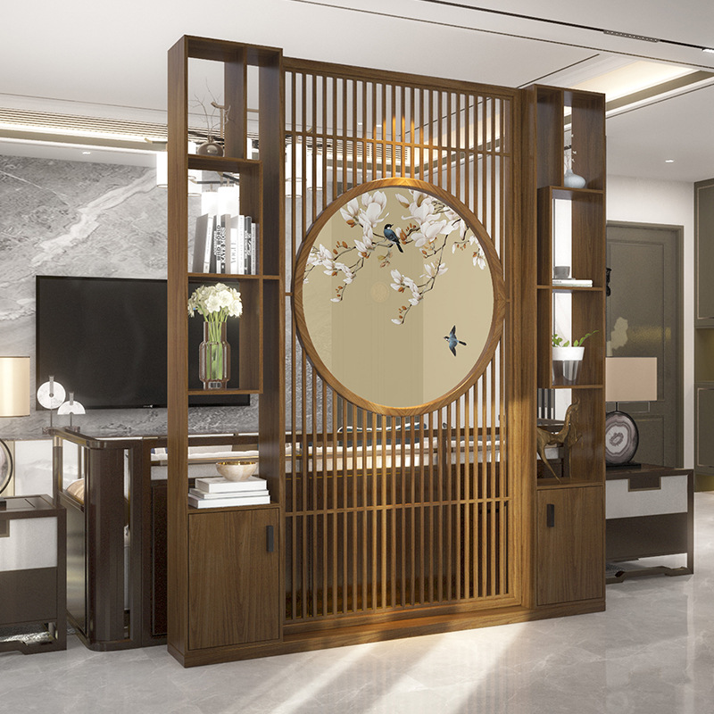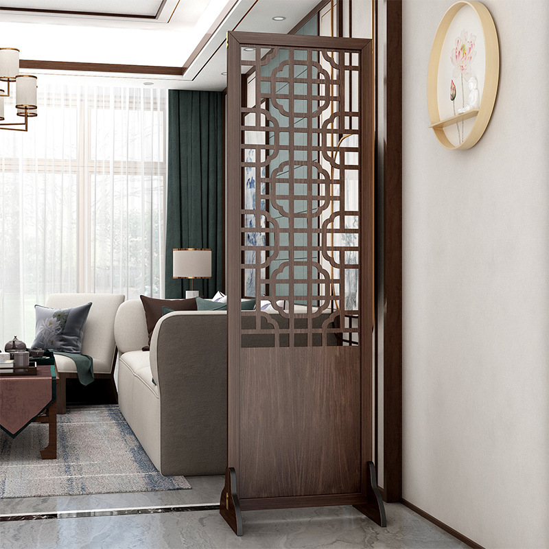新中国式実木屏風仕切り客間入門シンプル現代玄関玄関背景壁透かし彫り木製グリル