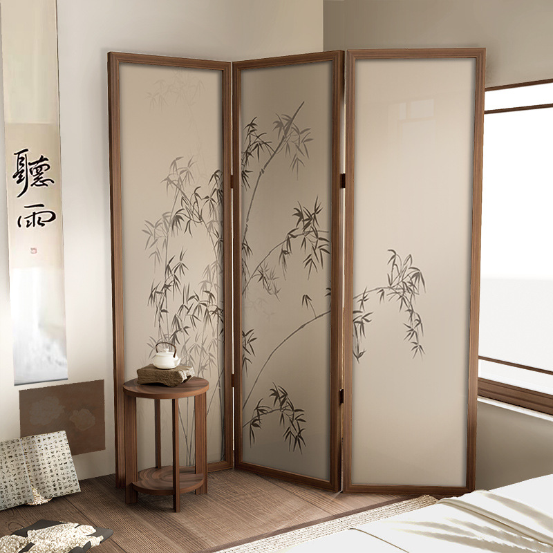 現代中国式折り畳み屏風が客間を遮断して移動し、茶室の寝室の装飾を遮るシンプルな竹の折り畳みスクリーン