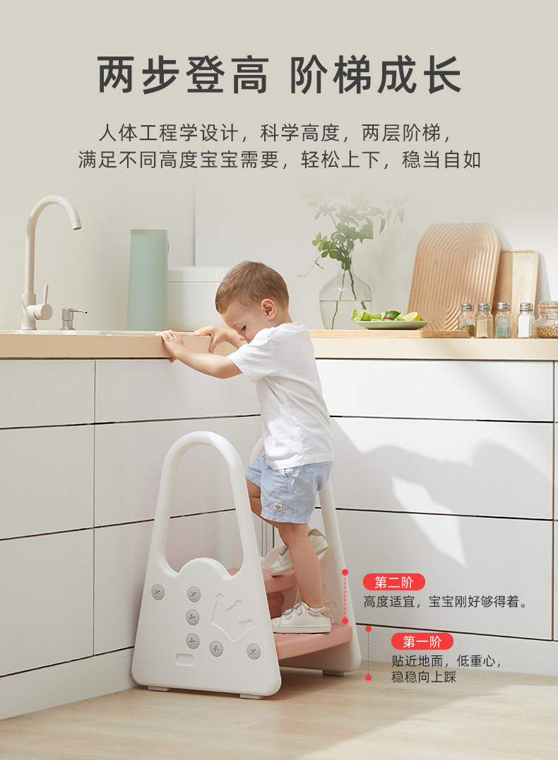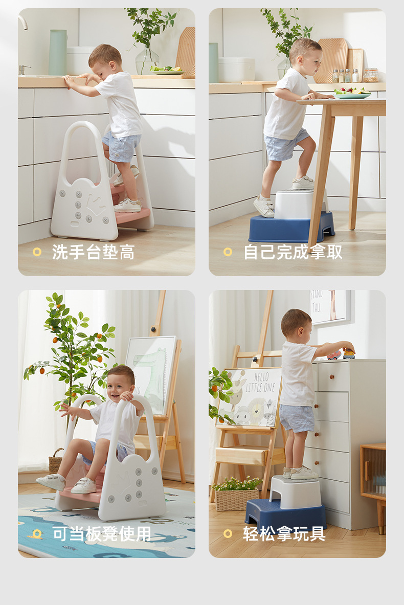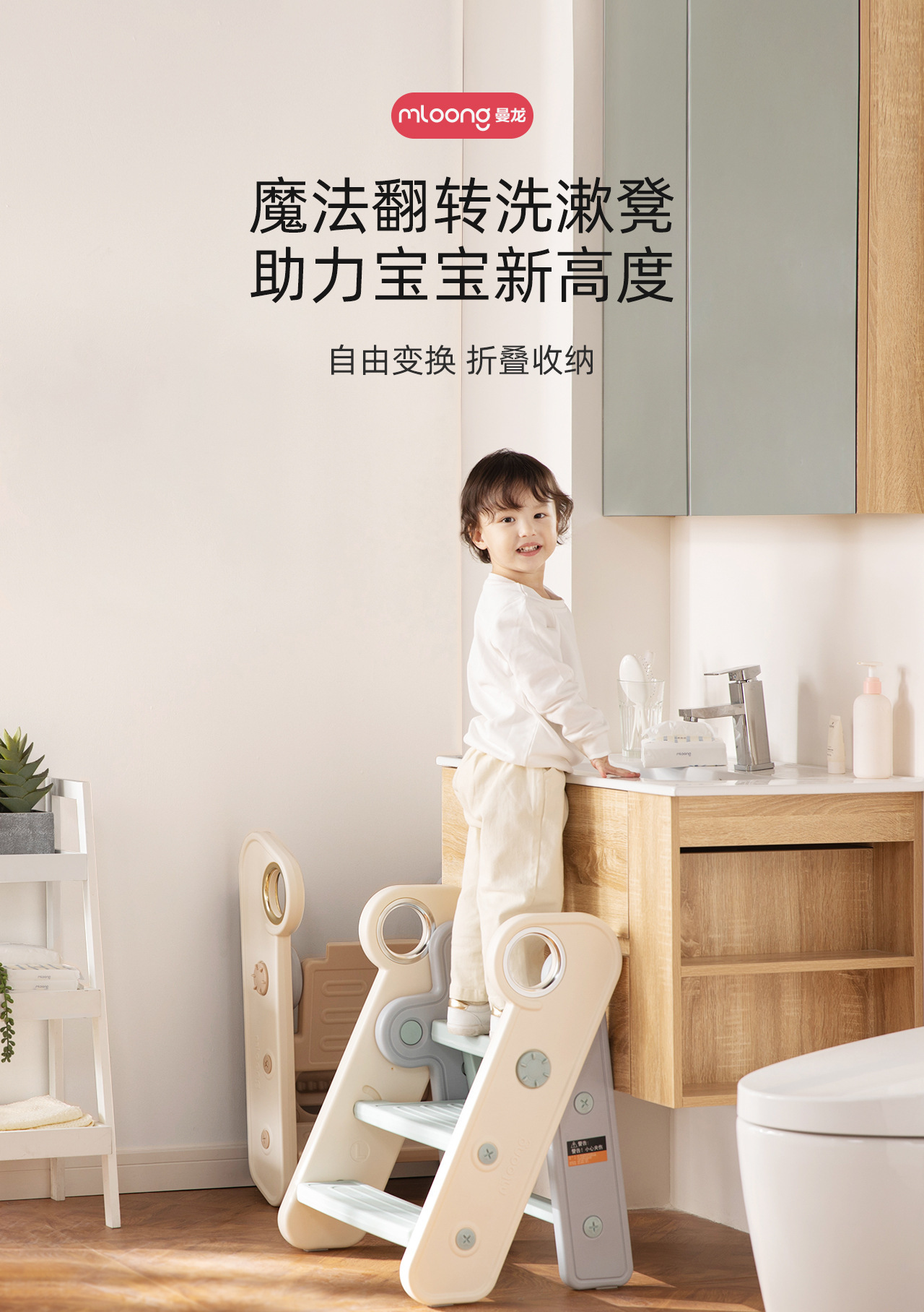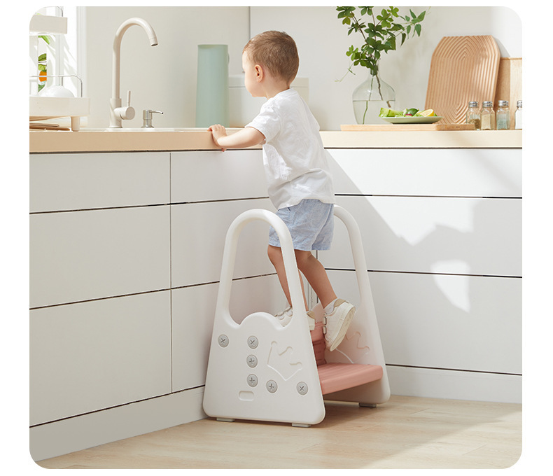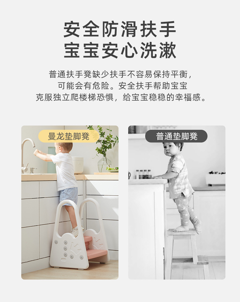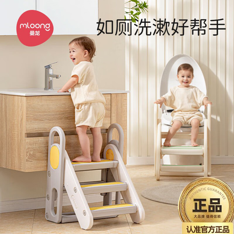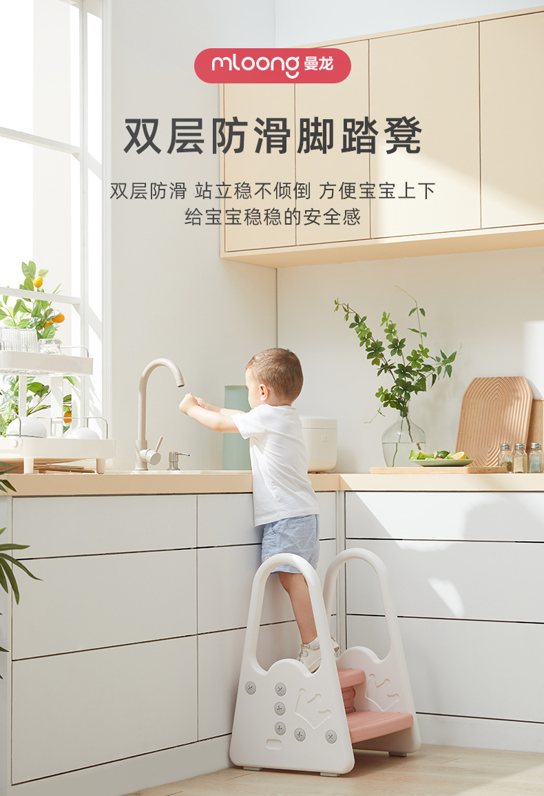 マンロンの赤ちゃんは手を洗って台の腰掛けをします。子供は足を踏み台にします。