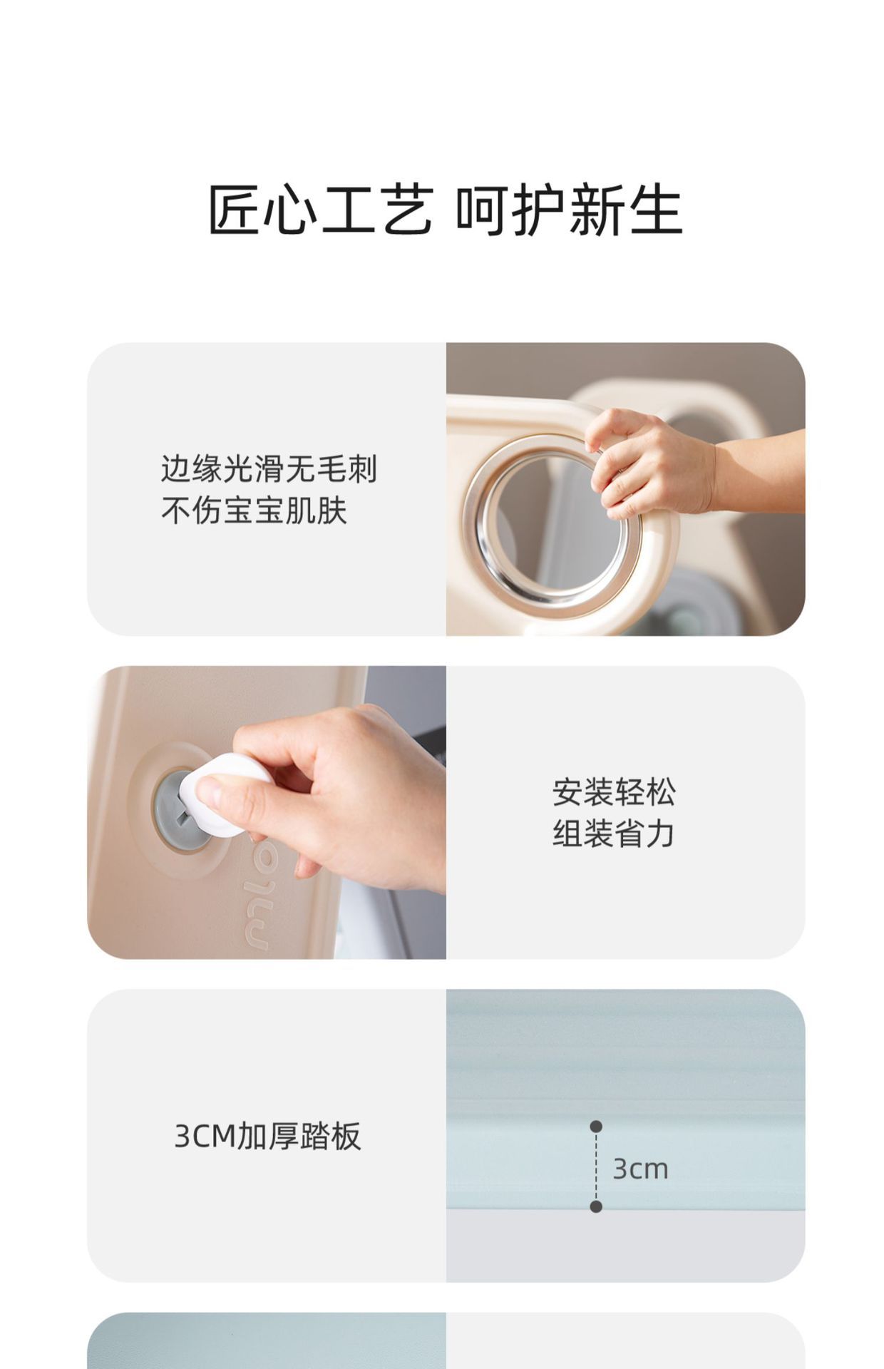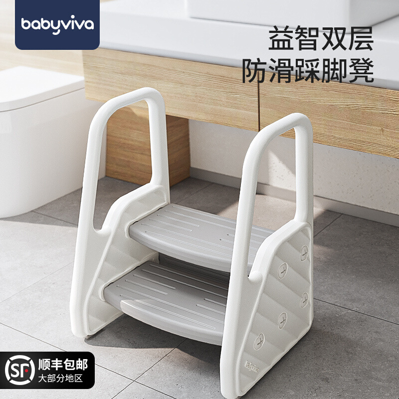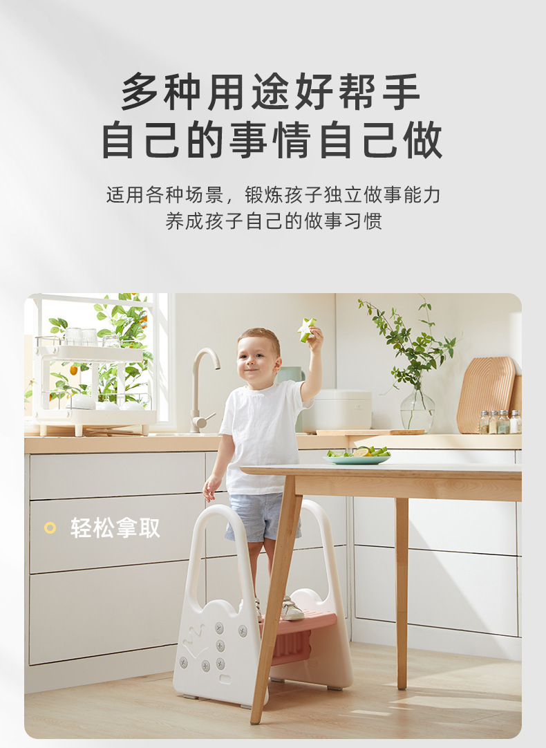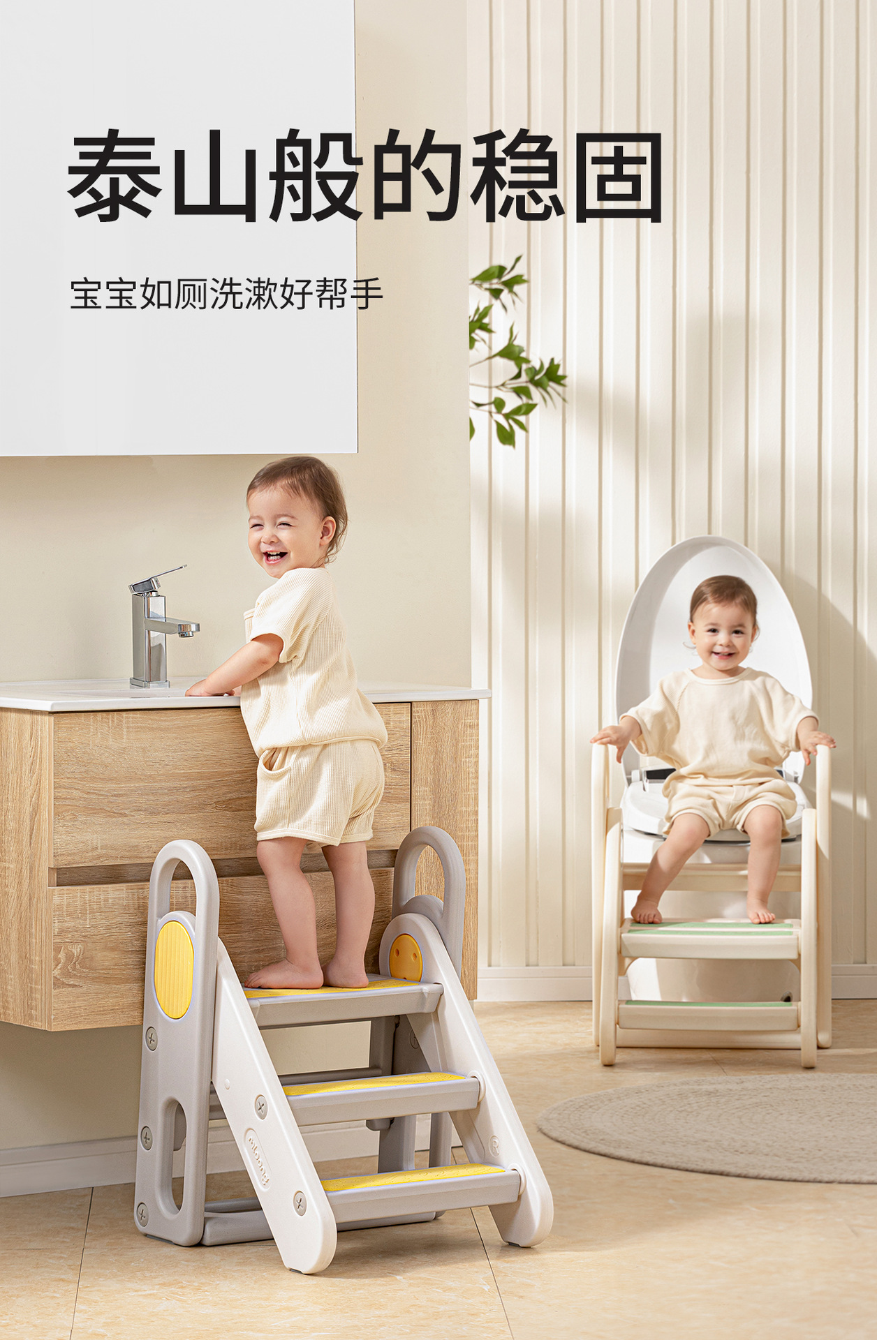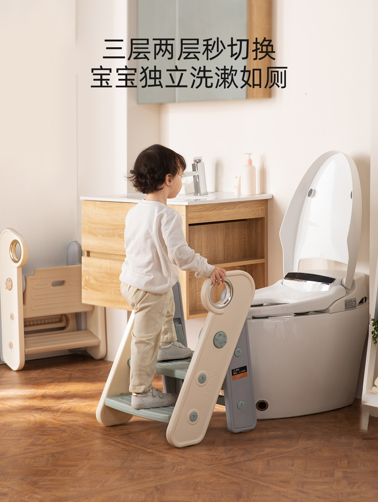 マンロンの赤ちゃんは手を洗って台の腰掛けをします。子供は足を踏み台にします。