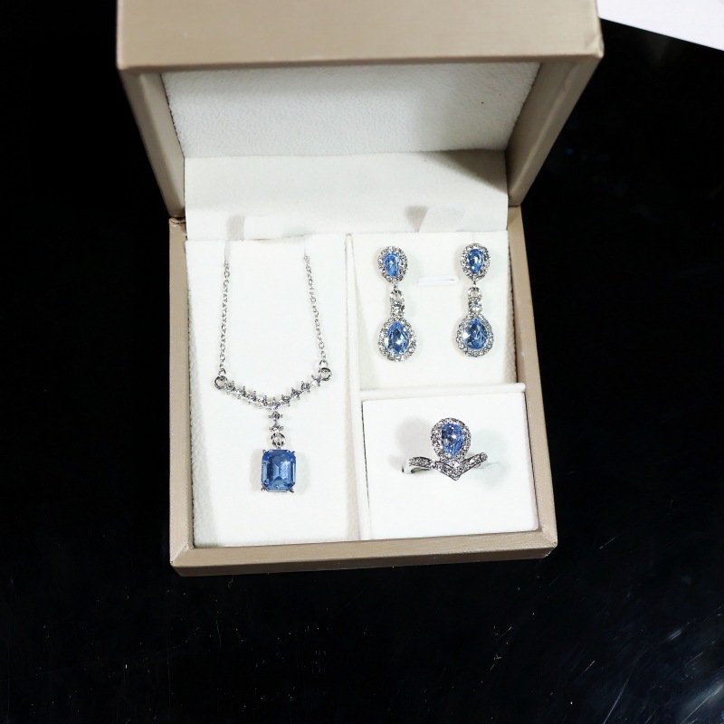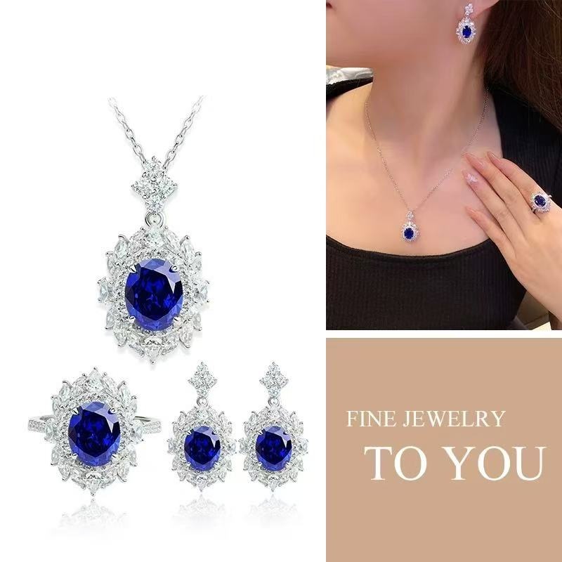 新しい国境を越えた欧米の贅沢な高級3点セットのモザイク指輪黄水晶ピアスのネックレスサファイア