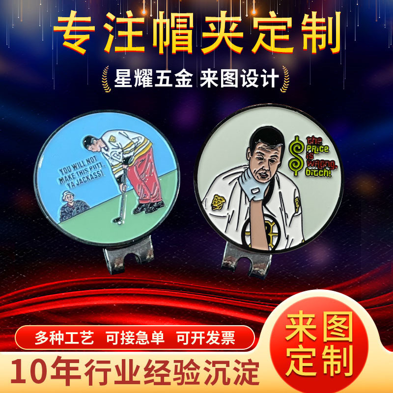 金属製磁気ゴルフハットクリップ、企業ロゴのカスタム、エナメル塗装、ヨーロピアンスタイルのボールポジションマーカー、ゴルフハットアクセサリーのオーダーメイド