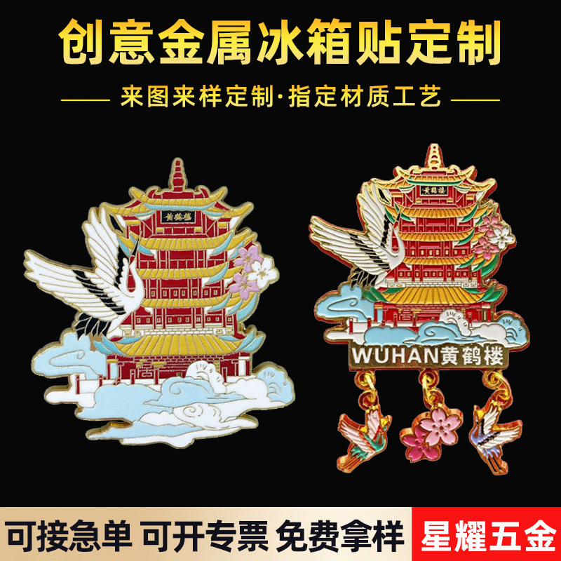 湖北武漢黄鶴楼冷蔵庫に塗装UVカラー印刷金属古風建築旅行文創記念品プレゼント