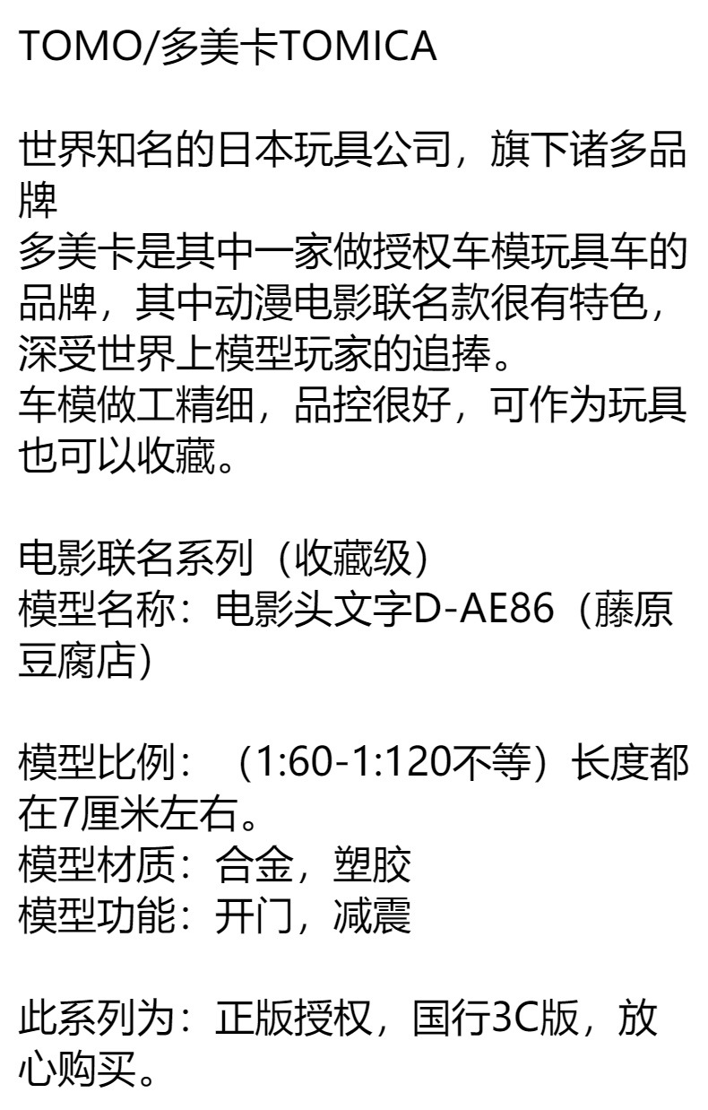正規版多美カード黒箱合金車シミュレーション頭文字dトヨタae86模型少年玩具コレクション車モデル