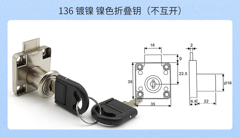 K-138-38 亜鉛合金家具ロックオフィスデスクロック引き出しワードローブドアロック亜鉛合金ニッケルカラーファイルキャビネットドアロック