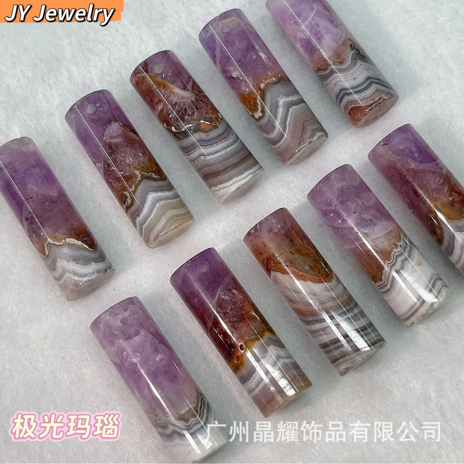 广州晶耀 跨境热销天然极光玛瑙紫晶玛瑙圆管几何形吊坠饰品批发