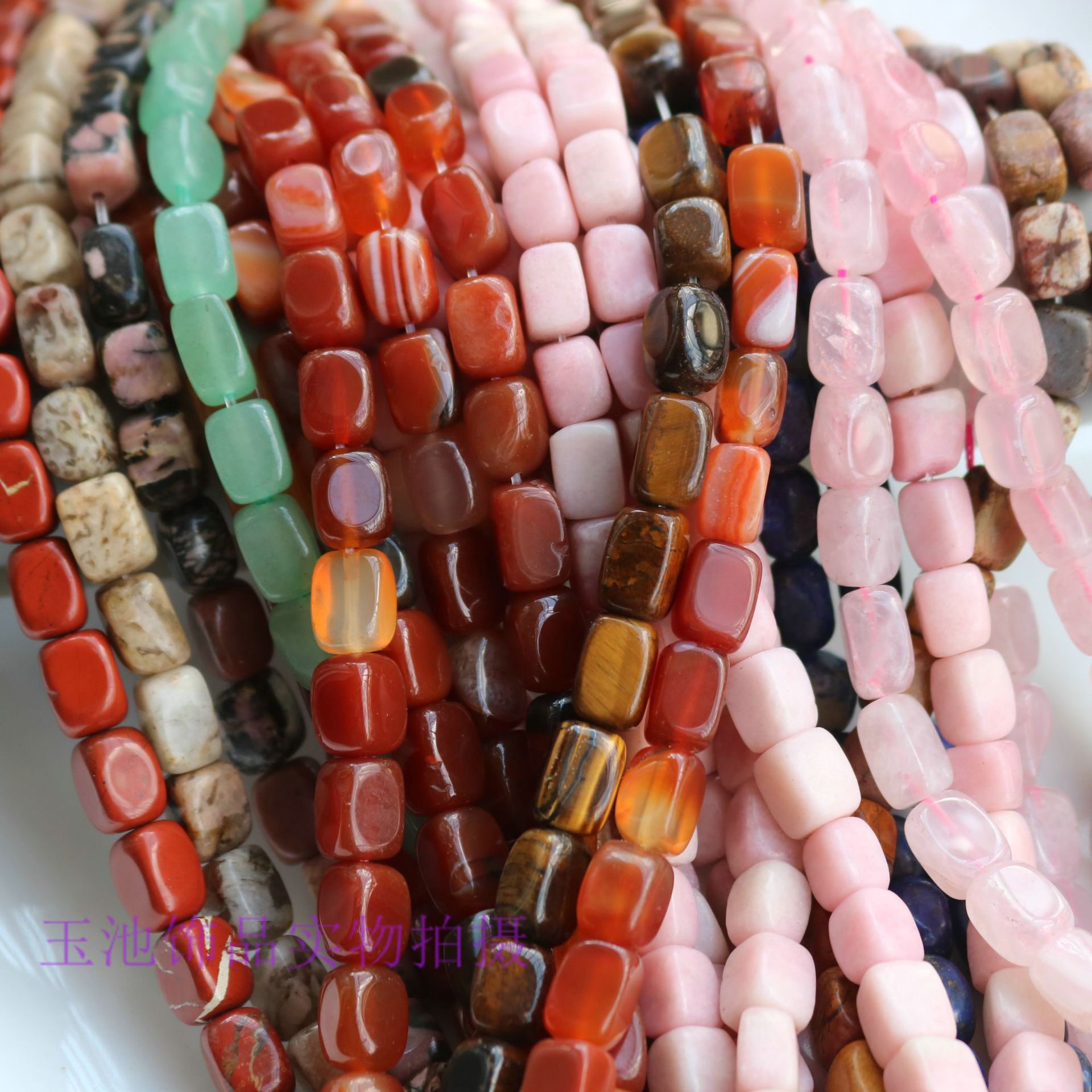 天然红玛瑙随形长方柱 粉晶青金滚石散珠项链手串手工diy饰品配件