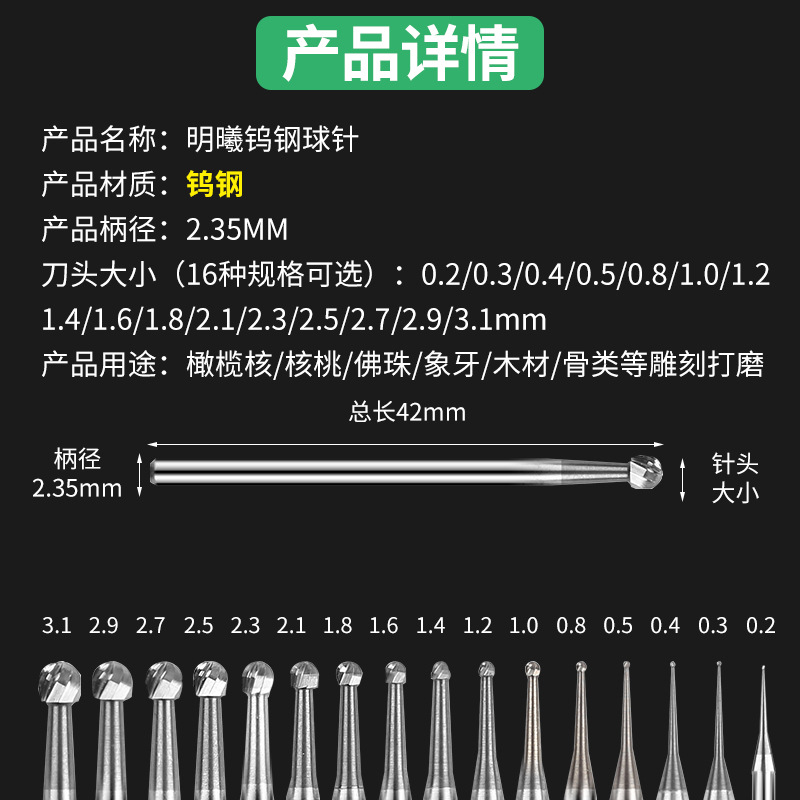 ドイツ輸入タングステン鋼球刀球針2.35柄径電動歯機彫刻工具刃オリーブ核木彫り
