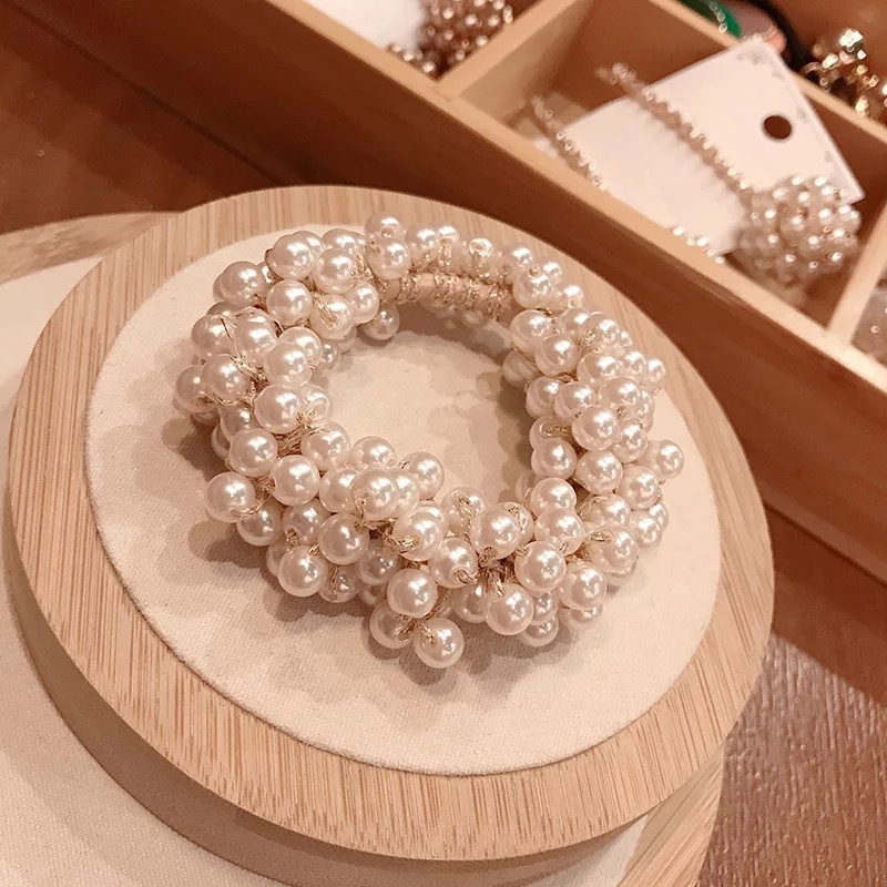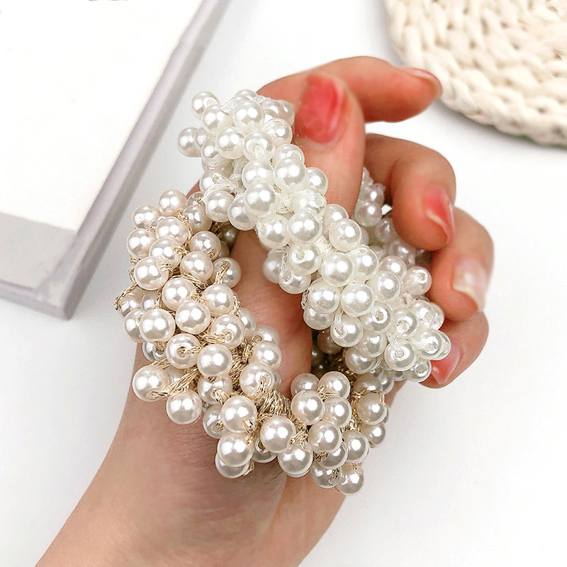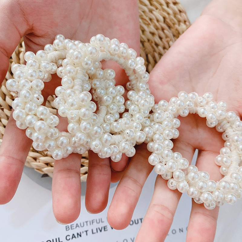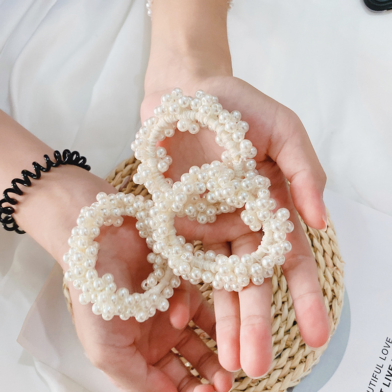 韓国版真珠の皮筋のブレスレットinsネットの赤い女性は馬尾の両用の頭の縄の髪飾りを刺して簡単に真珠の輪をいっぱい出します。