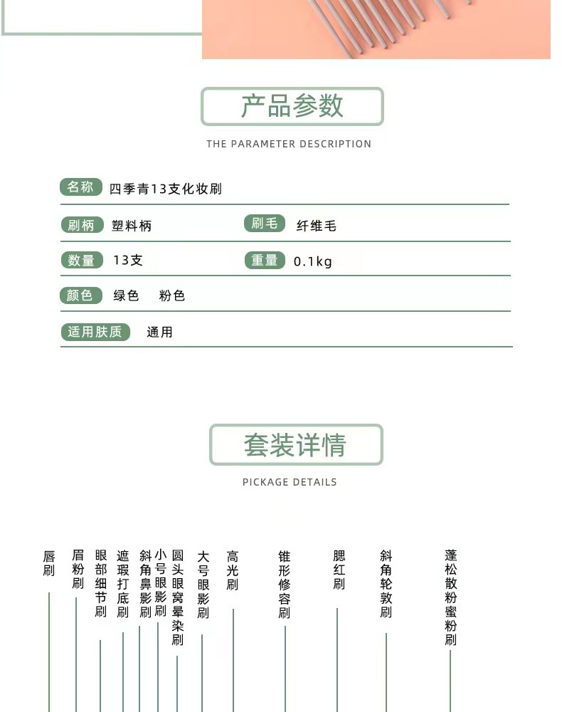 国境を越えた新型13本の四季青化粧ブラシセット携帯型頬紅ブラシアイシャドーブラシセット美化粧ツール