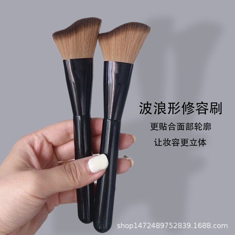 A115 コントゥアリングブラシ 波型で顔の輪郭にフィットする横顔面取り立体シャドウブラシ 初心者用メイクブラシ