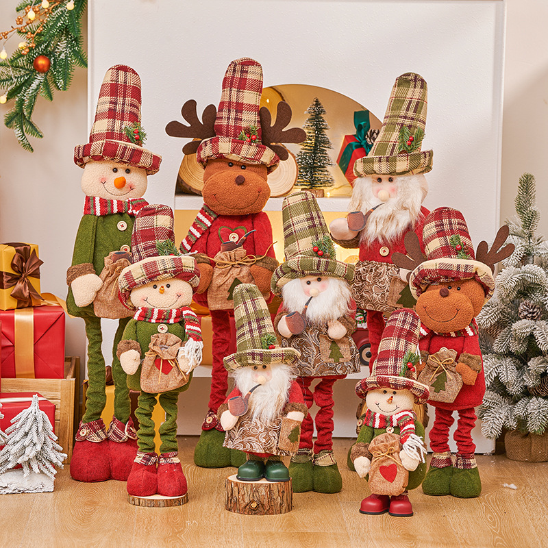 クロスボーダー新しいクリスマス人形装飾品レトロチェック柄クリスマスギフト老人雪だるまスタンディング装飾卸売