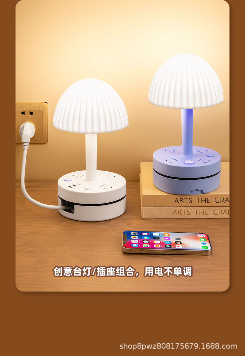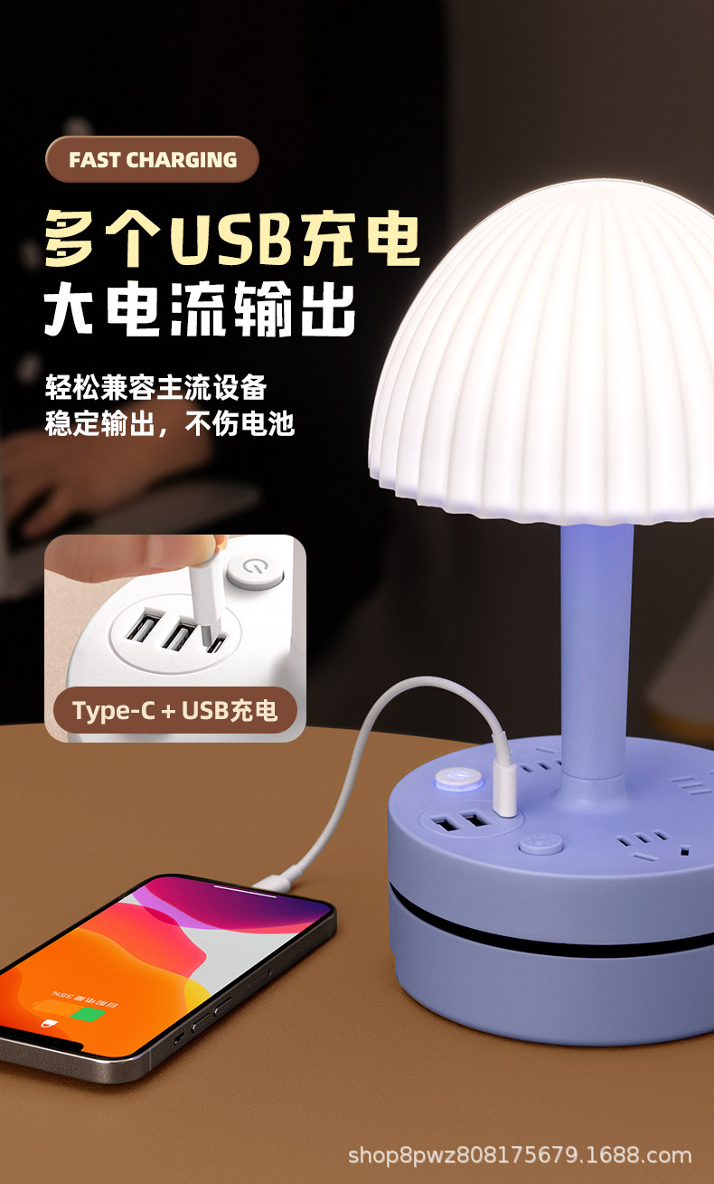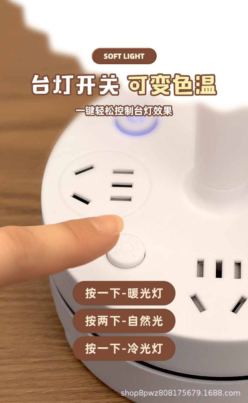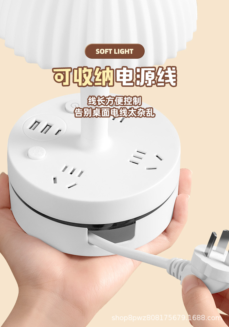 多機能LEDナイトライトソケット、寝室、寮、学習用、目の保護テーブルランプ、電気式USB一体型電源タップ