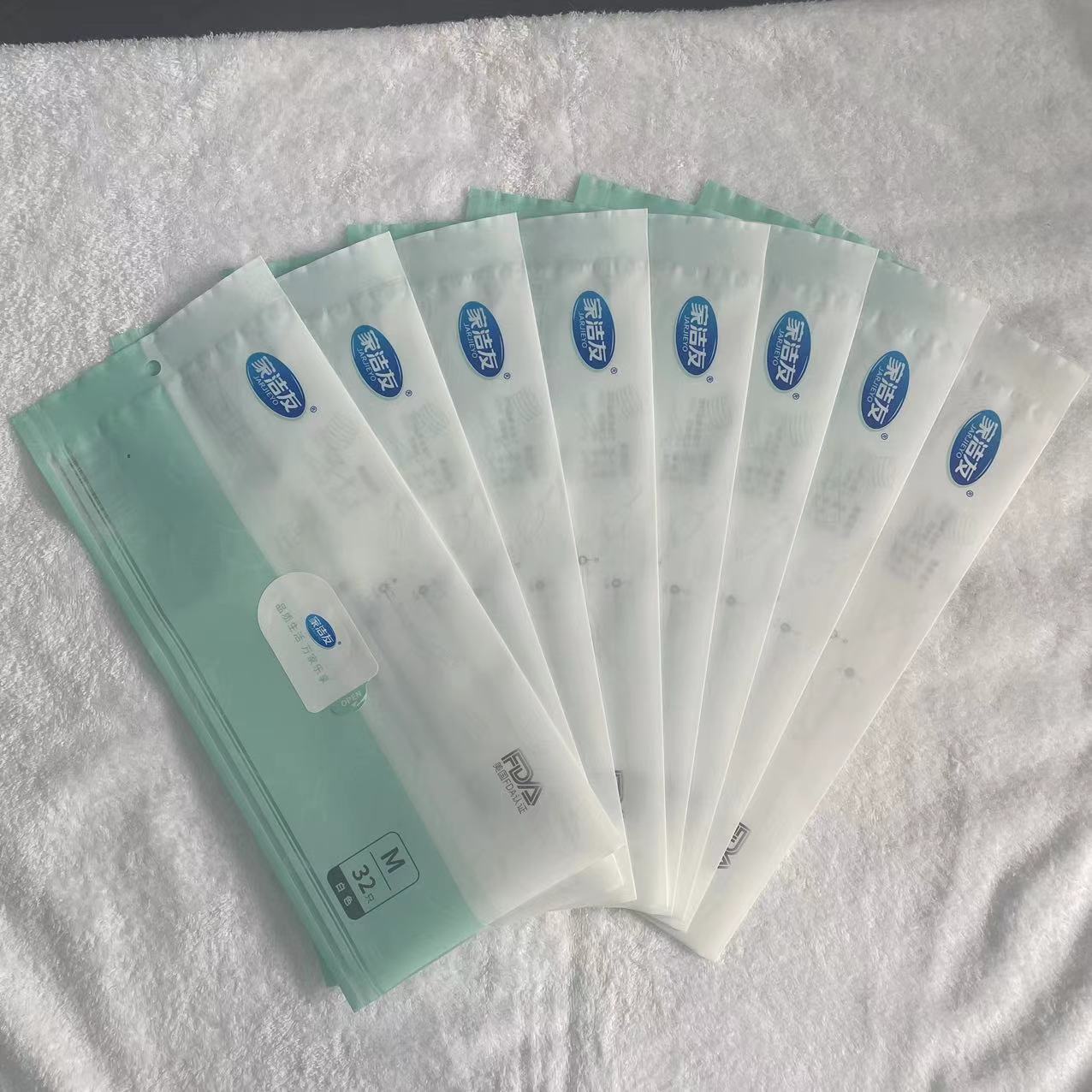 一次性丁腈白色手套袋MOPP+PET+CPP材质现货日用品包装手套袋厂家