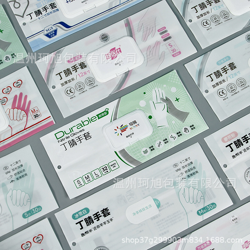 翻盖抽取式手套密封包装袋丁腈手套包装袋棉柔巾湿巾卫生巾包装袋
