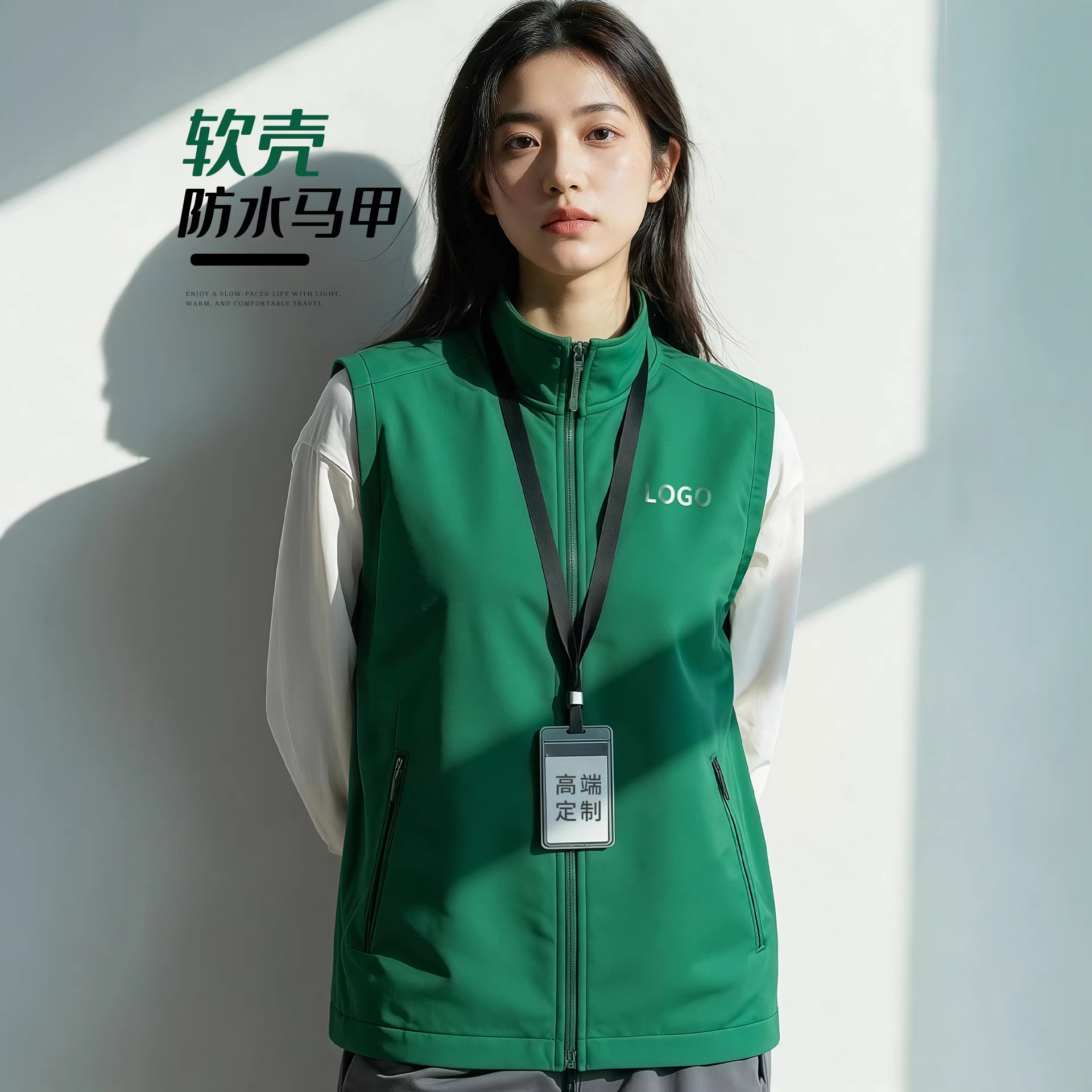 绿色防水马甲工作服定印logo秋冬生鲜超市企业员工马夹背心工服