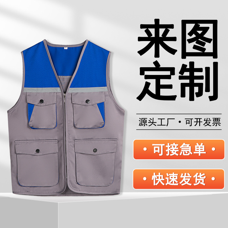 多口袋马甲工作服定制印logo志愿者广告劳保工程摄影餐饮背心定做