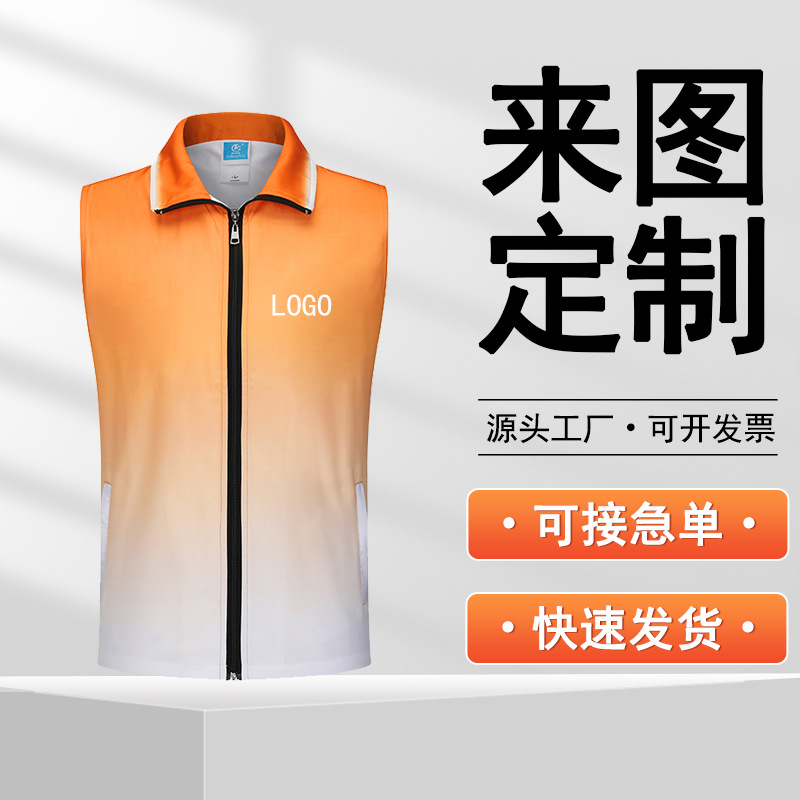 グラデーションカラーの襟付きベスト、カスタムメイド、ロゴの網版印刷、ボランティア作業服、プロモーション活動用作業服、蛍光色