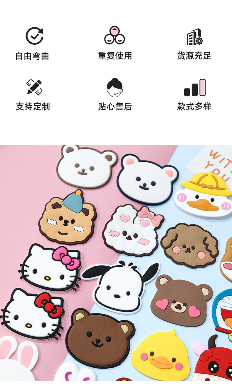 漫画熊犬pvcソフトドリップシールdiy部品携帯ケース水カップスリッパ収納ケーストランク車フック