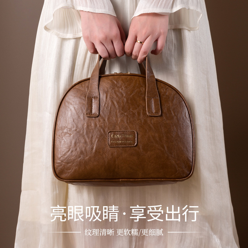 2025新款油蜡皮化妆包女便携收纳包轻奢大容量旅行防水洗漱包