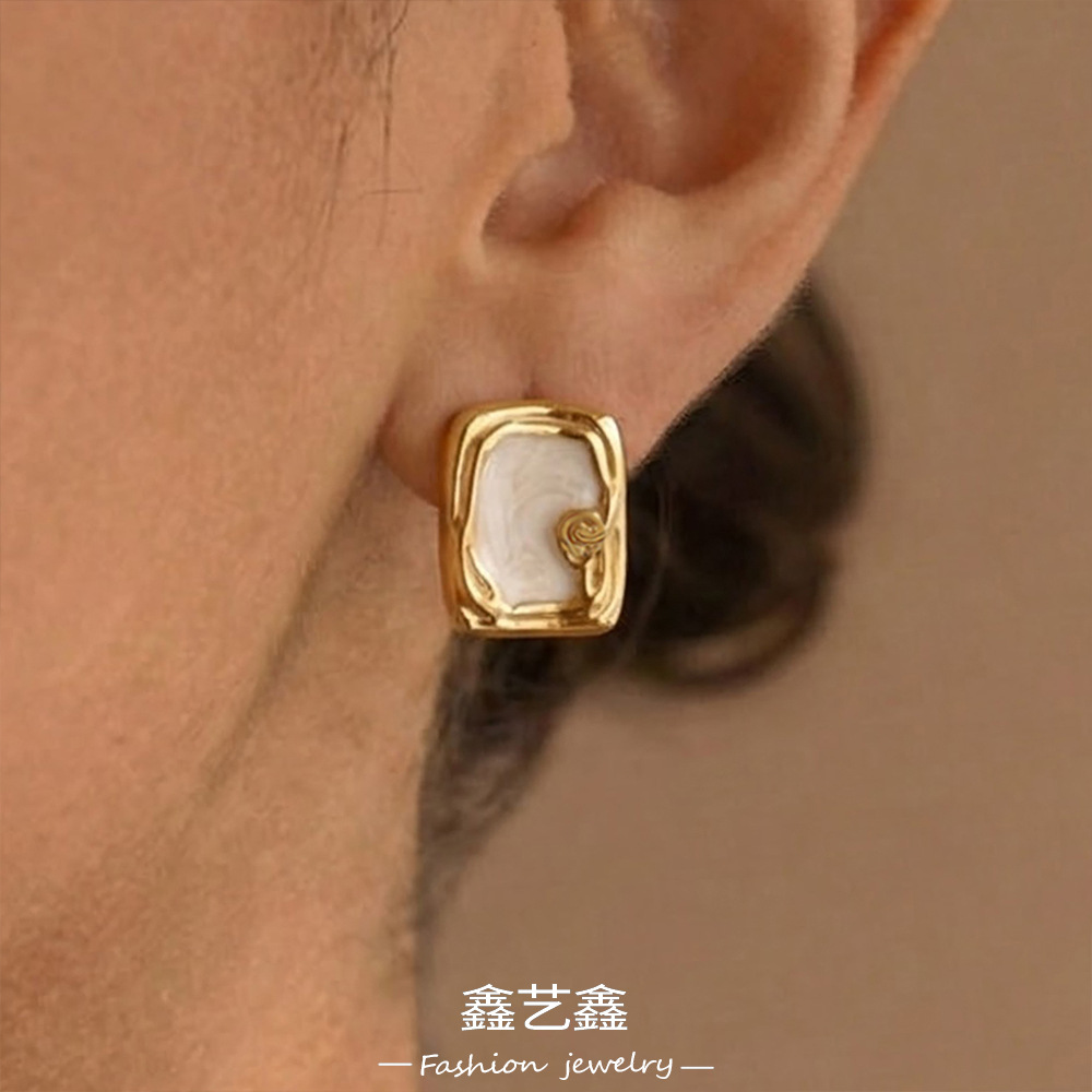 欧美轻奢风方形珐琅彩釉耳钉不锈钢材质镀18k真金高级感气质耳饰