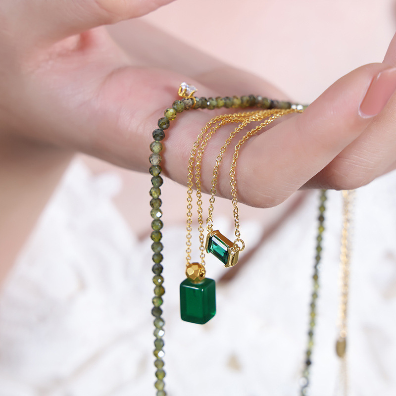 ファッションレトロな宮廷風の祖母緑のネックレスの組み合わせのネックレスの女性の鎖骨の首の鎖のチタンの鋼の数珠は色のアクセサリを落とさないでください。