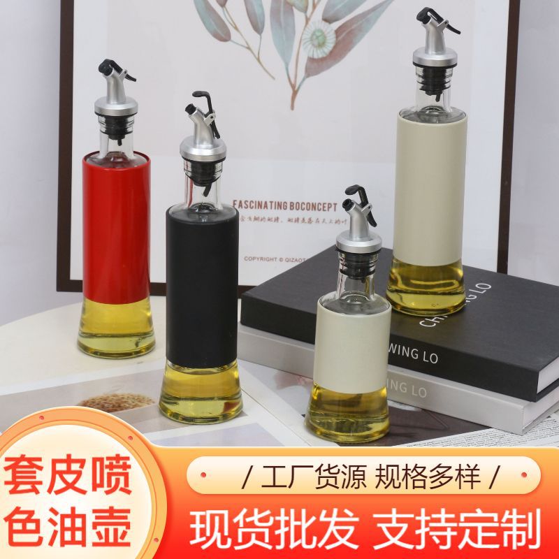 卸売ステンレス鋼スプレーカラースリーブオイルポットプッシュ式自動フリップトップガラスオイルボトルキッチン液体調味料ボトル