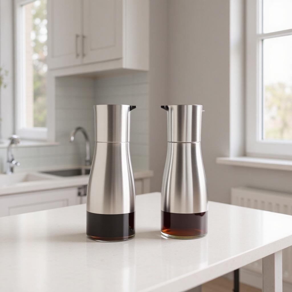 オイルボトル ステンレスガラス製オイルボトル 漏れ防止機能付き 醤油・酢・油ボトル 家庭用オイルディスペンサー
