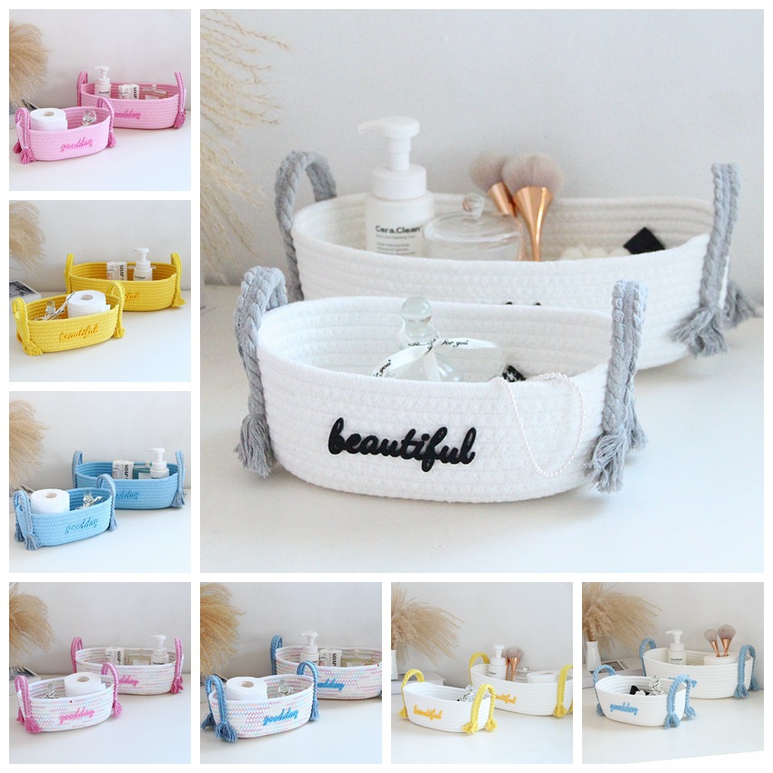 アルファベット英語綿ロープ収納バスケット手編みデスクトップ収納バスケット化粧品雑貨ins北欧収納ボックス