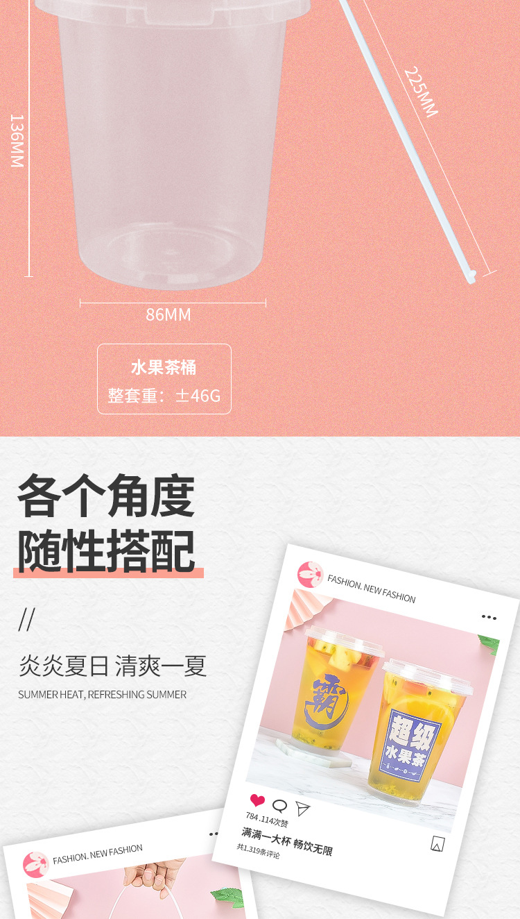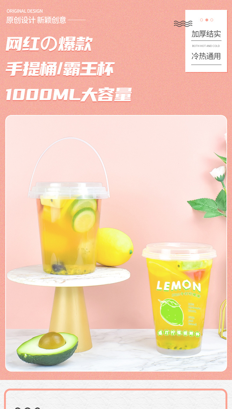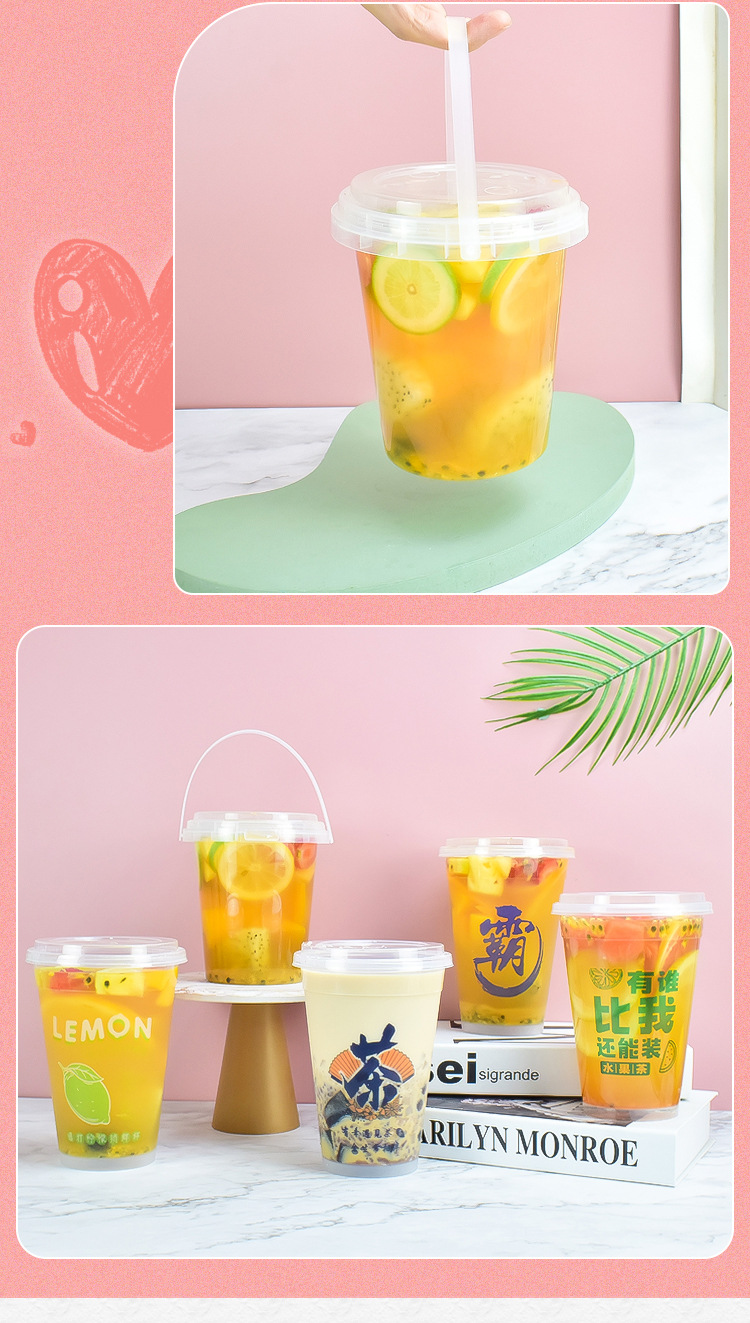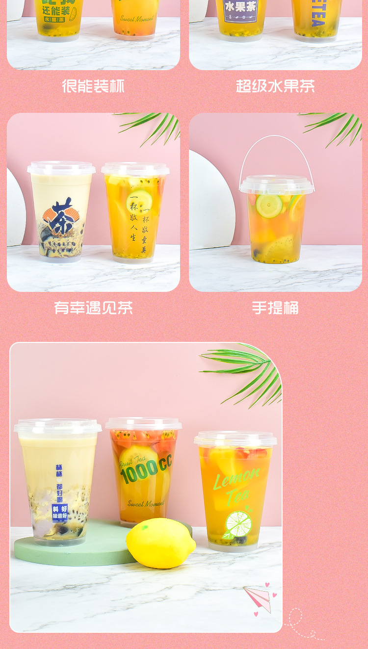 1000 ミリリットルフルーツティーカップオーバーロードカップ使い捨てミルクティーバケットカップ商業超大容量レモンティーパックカップ