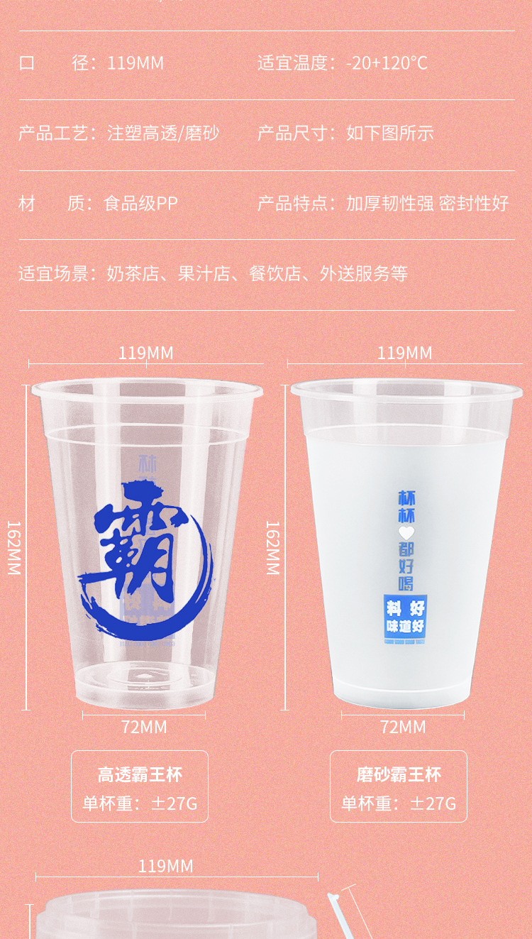 1000ml使い捨てミルクティーカップフロスト厚いpp射出成形覇王カップミルクティー店フルーツカップ覇王カップ